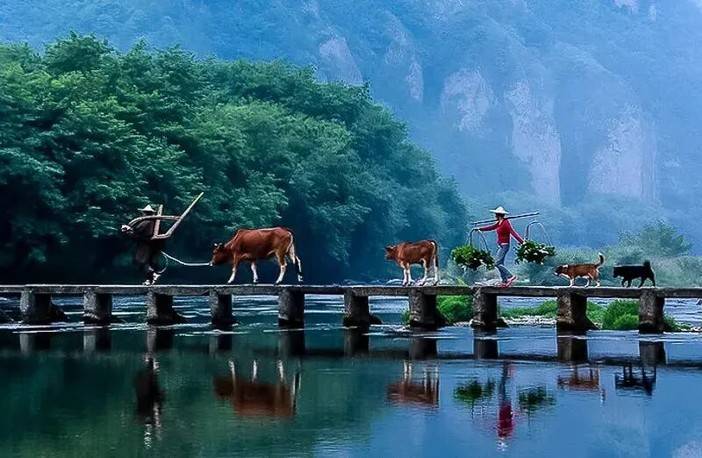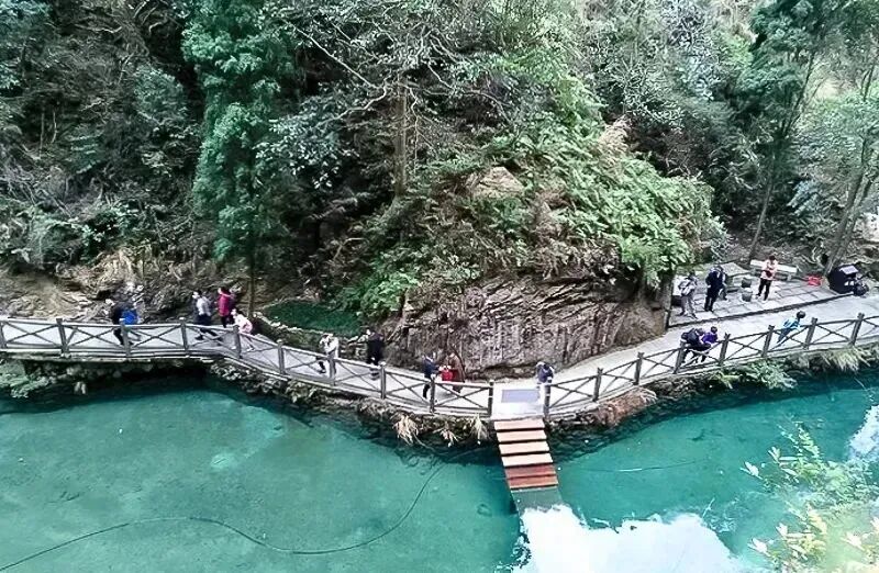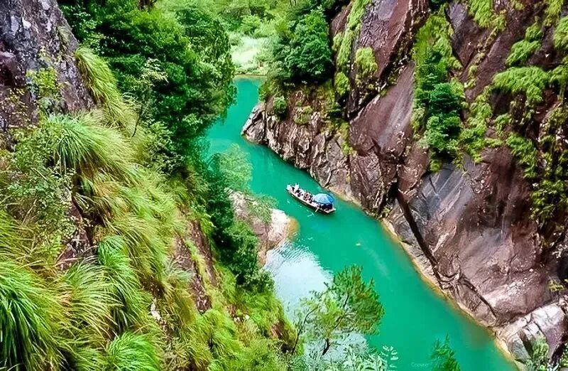 可徒步进入,而后乘坐木船,驶入楠溪江源头,水质清澈见底,能看到鱼儿成群熙熙;峡谷中鸟鸣声不绝于耳,仿佛回荡在河谷中美妙的音乐,一幅充满诗情画意的田园风光图景。