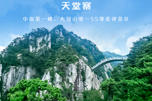 天堂寨为国家5A级旅游景区,为大别山主峰之一,古称"吴楚东南第一关",景区内有大小瀑布108道,其中落差达50米以上的18道。是吴楚东南第一关。雨过天晴后,登主峰观云海更是气象壮观。天堂寨峰顶北可望中原,南可眺荆楚,巍巍群山尽收眼底。海拔1729米的天堂顶有一口天塘,塘水不溢不涸,俗称“瑶池”。其间,雄关漫道,崇山峻岭,茂林修竹,龙潭飞瀑,奇松怪石颇多,古称“吴楚东南第一关”,气势雄伟壮观。