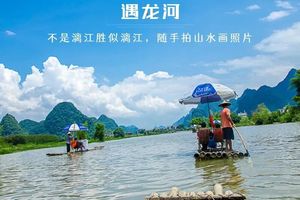 - 早餐后我们乘车前往遇龙河漂流:遇龙河两岸山峰清秀迤逦,连绵起伏,形态万千,江岸绿草如茵,翠竹葱郁,树木繁荫。遇龙河是漓江在阳朔境内最长的一条支流。感受它的美一定要来一次漂流,不同于一般漂流,遇龙河漂流是平静的漂流,漂流的主要目的不是刺激,而是躺在竹筏上的躺椅上享受宁静的河流,享受牧歌般的田园,享受时间似乎停滞了的感觉,只偶尔冲下小水坝,让你平静中也有欢笑。这里的竹筏是人工划桨,能真正地感受人在画中游,来了就要体验这种原汁原味的。