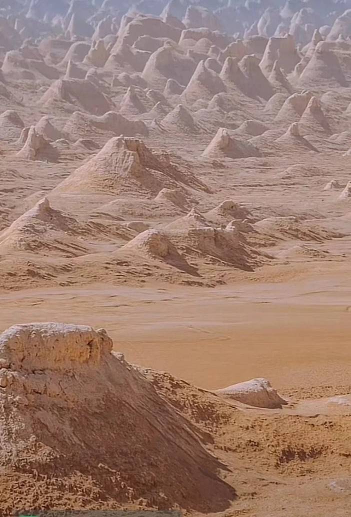 南八仙就位于315国道旁,这是典型的雅丹地貌。”雅丹”在维吾尔族语中的意思是“具有陡壁的小山包”。这也是相当形象了,只见高高低低的小土丘,三步一岗五步一哨地排布在寸草不生的地面上,像火星一样苍凉沉浸式包围了这片荒漠。来到这里手机会失去信号,指南针也可能失灵。据说曾经有8位女地质队员踏进这片荒漠后在风沙中迷失了方向,最终长眠于此。这也是南八仙名字的由来。