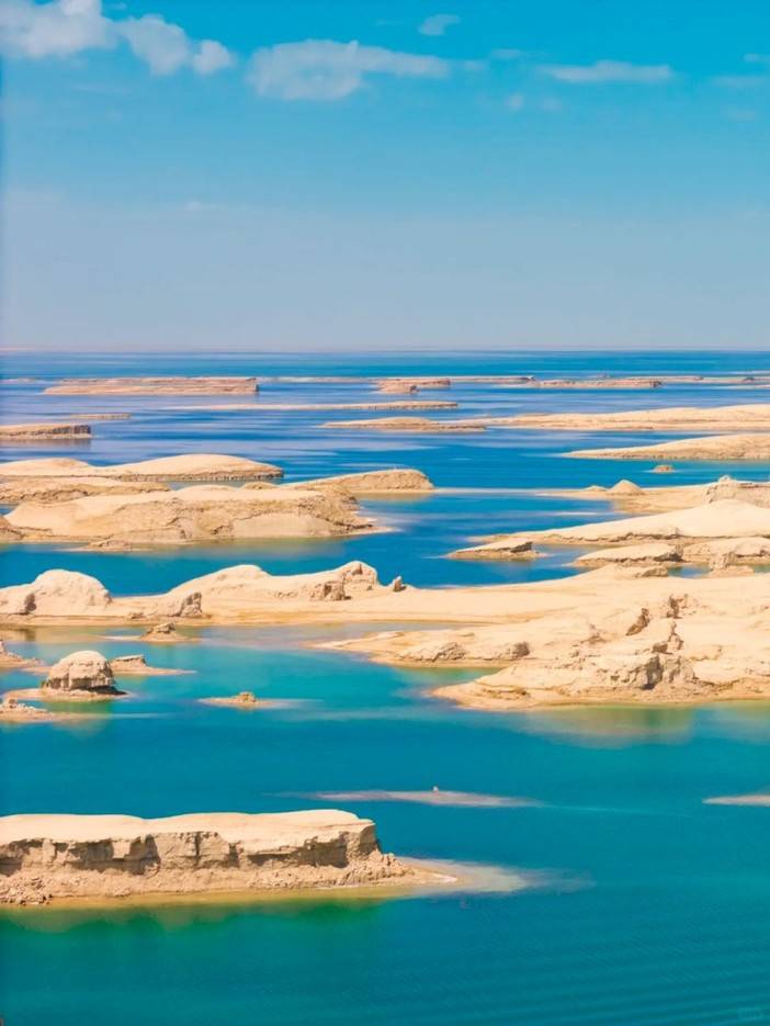 之后我们来到乌素特【水上雅丹】,这是国内仅有的水上雅丹地貌群,由于塔达木盆地的地壳运动而让青海湖等地的湖水通过地下流入了这雅丹境内,才形成了我们眼前所见到的独特的水上雅丹地貌。这里是被世人遗落的大美之地,是沙漠中的“千岛湖”。它的四周是荒无人烟一望无际的荒漠,就在这荒凉之地,这片水上雅丹地貌群,矗立在荒漠中凭空而出的一片湖泊里,有着无与伦比的惊艳美景。这里有神秘的雅丹,有壮观的雅丹,有瑰丽的雅丹。站在高处湖水之中,一艘艘类似舰艇的雅丹格外的壮观、震撼。随手一拍都是大片!