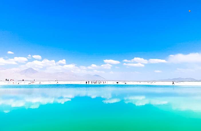 适时我们前往【东台吉乃尔湖】,这是一个没有被任何开发过的原生态盐湖,湖面如同“Tiffany蓝”一般的色调,盐地如同奶油冰激凌化开,被网友称为【中国青海版马尔代夫】。碧绿清澈的湖水,晶莹剔透的盐滩,我们可以尽情拍照,留住每一个美好的瞬间。