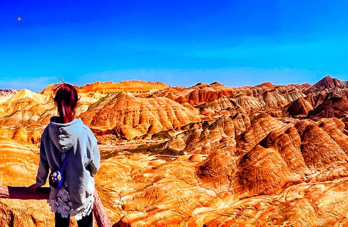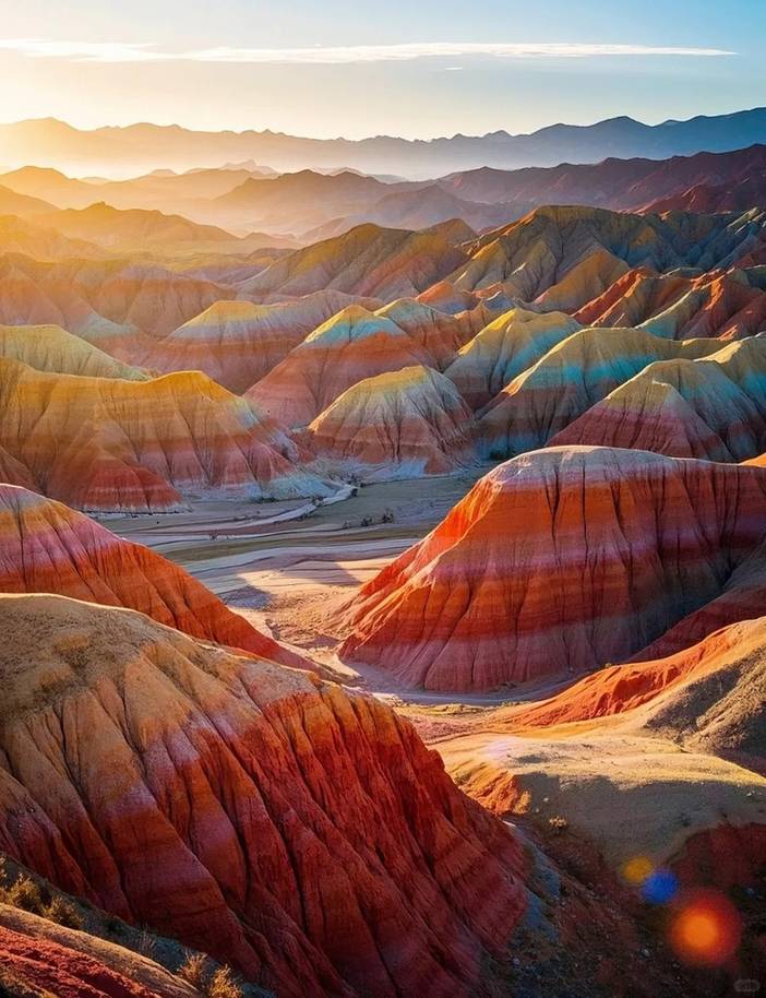 早餐之后前往张掖七彩丹霞地貌,观看形成于侏罗纪三期,距今一亿三四千万年前的丹霞地貌。