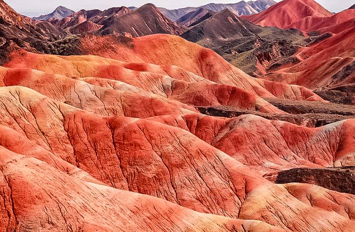 国内唯一的丹霞地貌与彩色丘陵复合区,被《中国国家地理》评为中国最美的七大丹霞地貌之一。主要包括冰沟丹霞和七彩丹霞两大风景区,由红色砾石、砂岩和泥岩组成,造型奇特、气势磅礴。张艺谋的《三枪拍案惊奇》、姜文执导的《太阳照常升起》和电视剧《神探狄仁杰》的外景地。此外,这里还是摄影爱好者的天堂,在景区内有不少摄影者扛着“长枪大炮”四处拍摄取景。