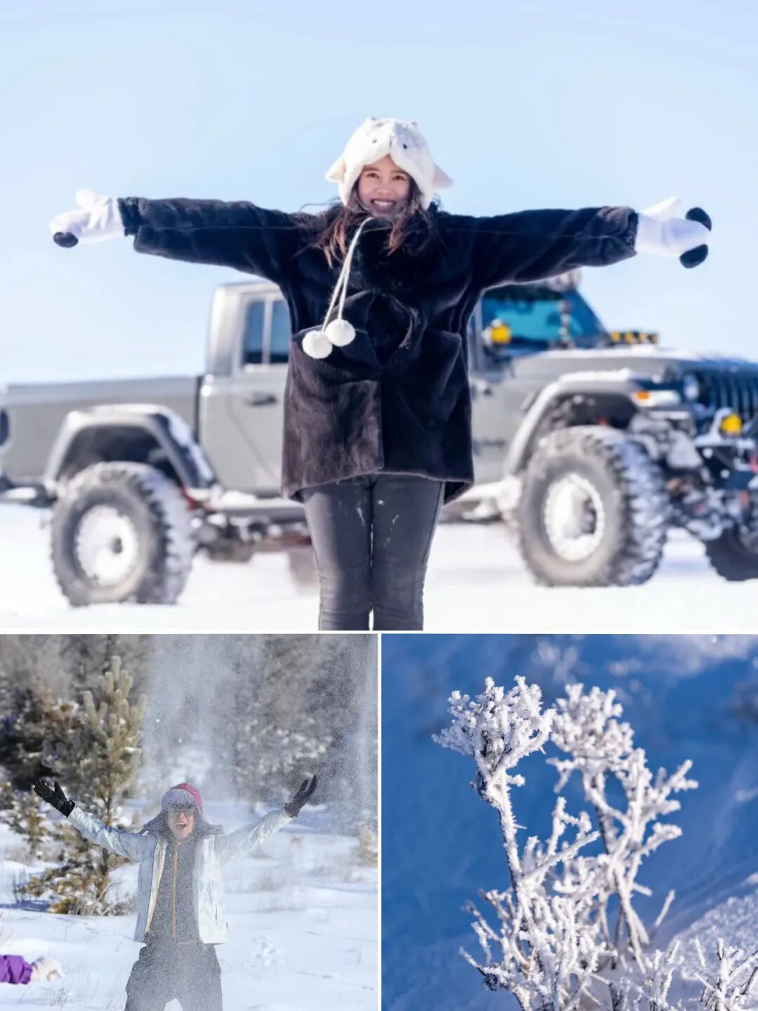 中午|饿狼秘境狂欢,林间开辟雪原餐桌,铜锅沸水映着松枝积雪,羊肉无限续盘:现切察哈尔羊+野生韭菜花蘸料,餐后雪仗大战:分队攻防赛,胜队赢取草原手工银饰彩蛋,随后黄岗梁水库打卡。