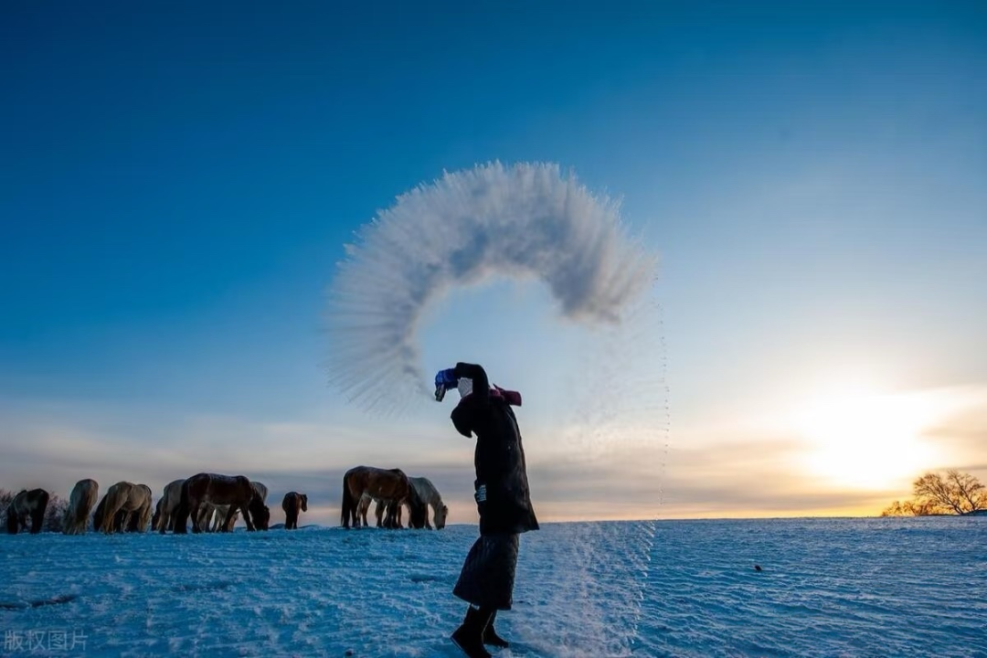 达里湖的冬日,是一场冰雪的盛宴。湖面被冰雪封印,宛如一块巨大的璞玉,散发着温润的光泽。冬日的湖面,似一面巨大的银镜,一群洁白的天鹅优雅地站立其上,仿佛镶嵌在冰雪世界中的精灵,静谧而神圣。冬日的达里湖仿若梦幻之境,湖面封冻,冰面在暖阳下闪烁着细碎银光。渔民们身着厚重的棉衣,脚踏坚实的冰面,用世代相传的智慧和技巧,在晶莹剔透的冰层下布置巨大的渔网。随着渔网的缓缓收紧,一条条肥美的鱼儿跃然冰上,闪烁着银色的光芒,仿佛在诉说着这片水域的丰饶与生机。