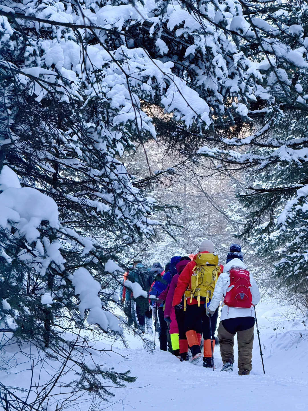 冬日美林谷徒步,踏雪穿行林海雪原!松枝缀满白雪,踩上去咯吱作响,雾凇如水晶挂枝,阳光穿透林间洒下斑驳金影。步道沿山谷蜿蜒,两侧银峰耸立,偶有松鼠跃过雪地,留下细碎爪印。寒风裹着松针清香,呼吸间满是凛冽清新,全程无陡坡,既能沉浸式感受雪国静谧,又能收获徒步的惬意与治愈~