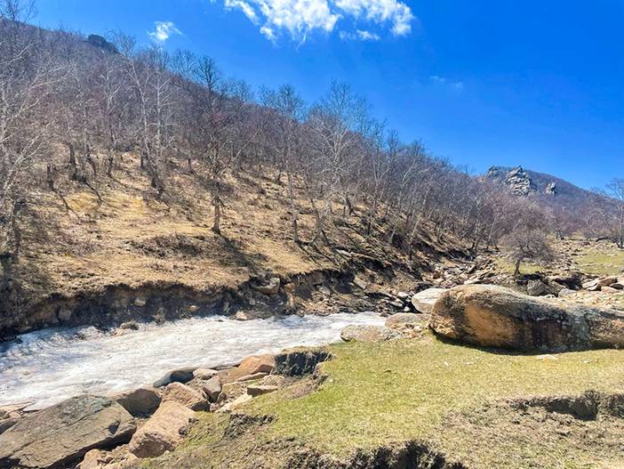 高山草甸、石河、溪流、白桦林、悠闲吃草的牛…