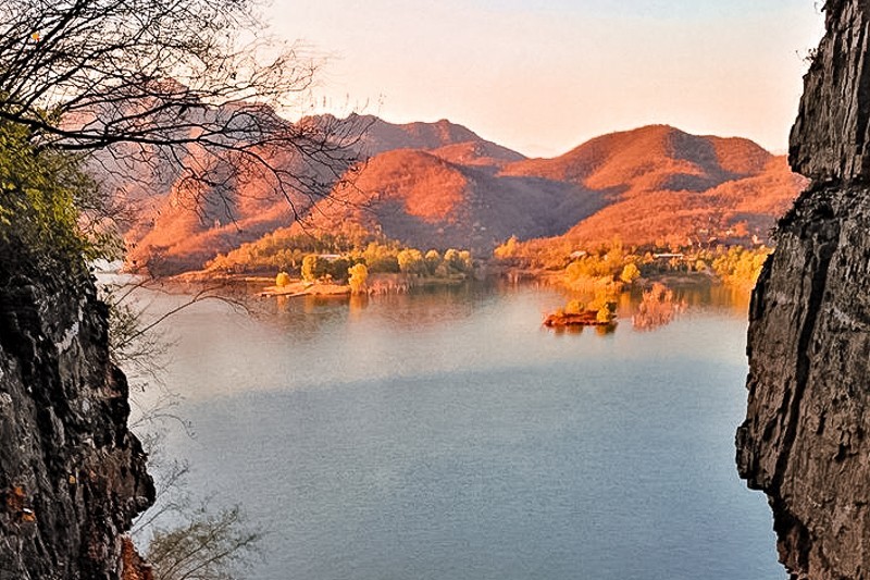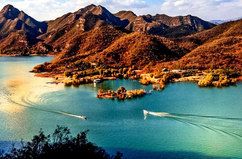 这里风景怡人,山势雄奇险峻,空气洁净无尘,湖水清澈柔美,林木繁盛茂密,湖中碧波荡漾,可泛舟戏水,可潜水畅游,可放钩垂钓,可乘船观景,是北方山水类度假首选之地。这里是86年版《西游记》、《绝命逃亡》、《赤壁》、《墨攻》等大片的取景地。
