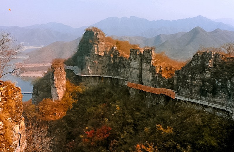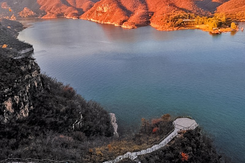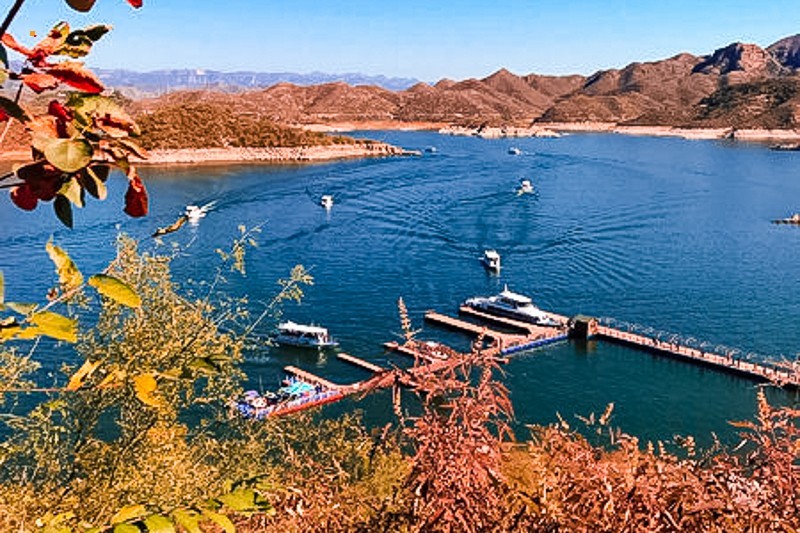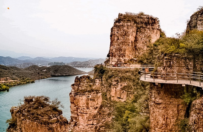 我们到达易水湖码头,一起坐船到湖中心去上高山栈道观看全景,逛长空栈道——赤壁拍摄外景地。易水湖风景区因可与漓江风光相媲美,故而被誉为“北方小桂林”。易水湖是利用四周高耸的山势而修建的一座人工湖,周围环境优美,清澈纯净,景色宜人。藤萝倒挂的悬崖峭壁,勾划出南国风光的桂林山水画,并且留下了七仙度国舅的美丽传说,可谓是欲知桂林风景,何必千里下江南。