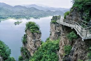 我们到达易水湖码头,一起坐船到湖中心去上高山栈道观看全景,逛长空栈道——赤壁拍摄外景地。易水湖风景区因可与漓江风光相媲美,故而被誉为“北方小桂林”。易水湖是利用四周高耸的山势而修建的一座人工湖,周围环境优美,清澈纯净,景色宜人。藤萝倒挂的悬崖峭壁,勾划出南国风光的桂林山水画,并且留下了七仙度国舅的美丽传说,可谓是欲知桂林风景,何必千里下江南。