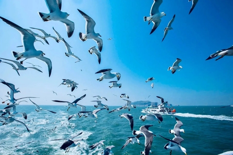 - 上午|集合乘车至“天然氧吧”—林海景区,行走木栈道游览景区的玻璃栈桥,赏天然的黄、渤海交汇处,登369台阶,感受“一脚踏两海,两耳听双涛”的神奇感觉;后步行体验长岛慢道悠游至长岛县城制高点—烽山景区,参观候鸟标本展览馆,登长岛最高峰,赏苍鹰展翅,鸟瞰长岛县城全貌。