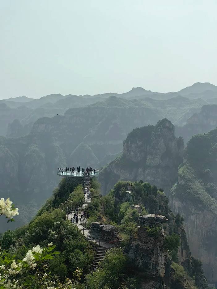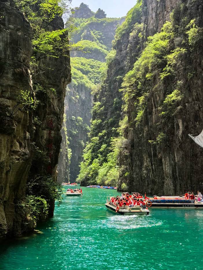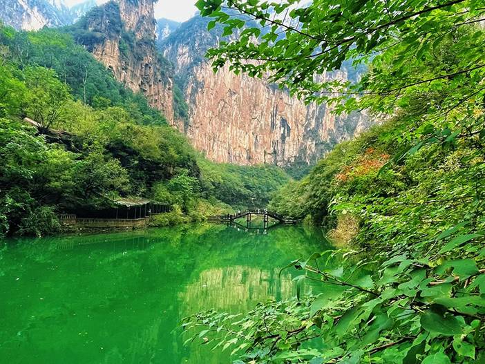 景区总面积 56 平方公里,主峡谷长 26 公里,是太行最险最长的峡谷之一。核心看点:通天湖碧波如镜,倒映两岸绝壁;三叠瀑、天河壶口瀑布水流奔涌,“十步一景、百步一瀑” 尽显太行水韵;石屏山、神指峰壁立千仞,嶂谷地貌壮观;可体验亚洲斜度最大的天界索道(43.5 度),直达仙人峰,俯瞰峡谷全貌;悬空玻璃观景台悬于 300 米高空,脚下深渊,惊险与美景并存。建议走 “谷底水系 + 峡谷峰林” 路线,全程约 3.5 小时,感受 “北方小九寨” 的灵秀与雄奇。