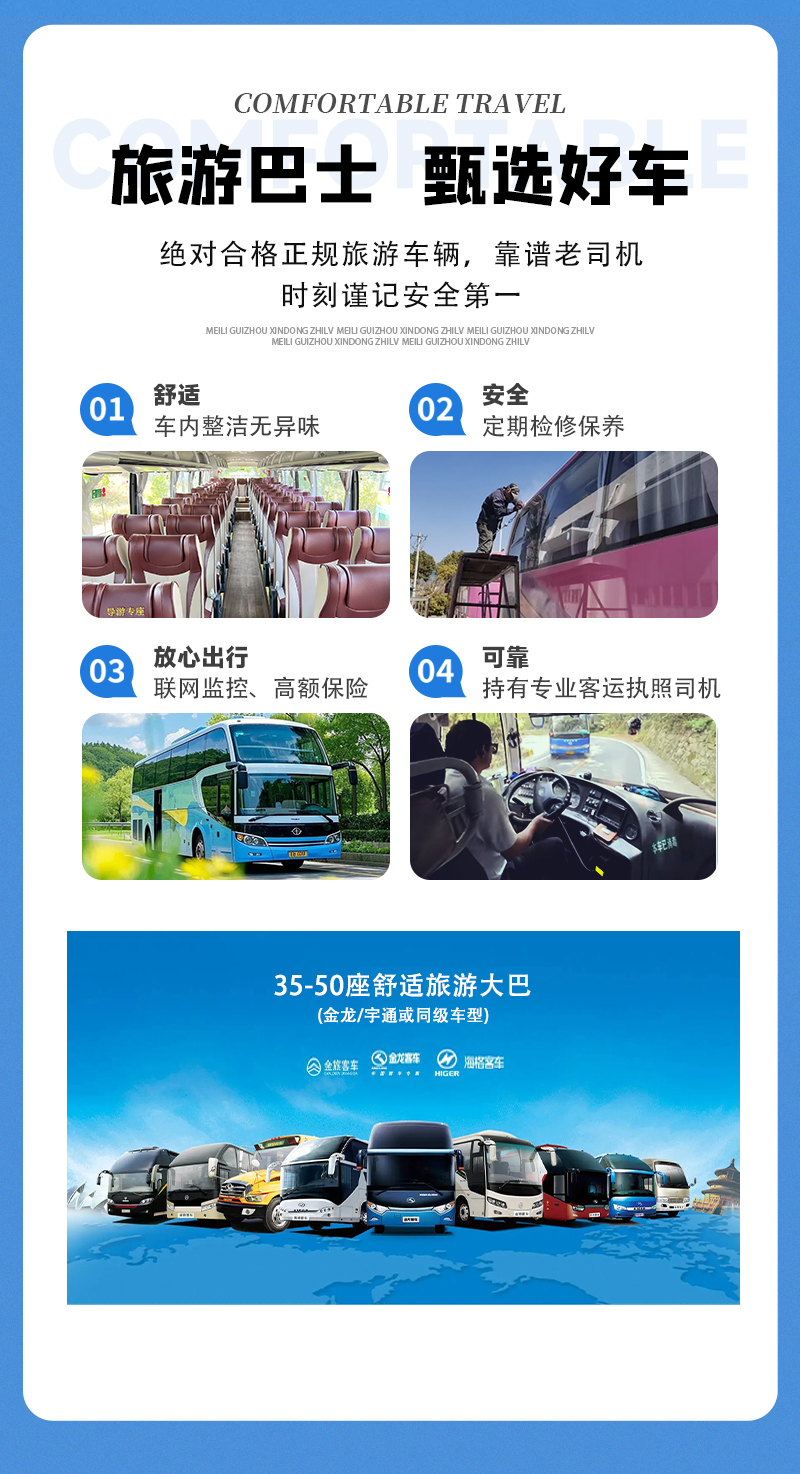 1)交通:全程往返空调旅游大巴包车费用及司机食宿等费用(不含景区小交通);