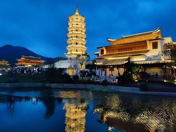 - 下午适时集合前往【葛仙村】。这里宛如世外桃源般的存在,青山绿水环绕,古村建筑错落有致。夜晚的葛仙村更是别有一番风味,灯火辉煌,仿佛穿越回了古代的仙侠世界。各种夜游表演应接不暇,还有特色的千灯会、烟花秀等表演!葛仙村度假区,按照国家5A级景区标准设计建设,以东汉末年葛玄在葛仙山的修行事迹为线索,融合中国传统文化内核和要素,结合古典山水画境,以水、竹、村为创意元素,致力打造一个集生态旅游、休闲度假、商务会展和传统文化体验的天然圣地和绝佳仙村。