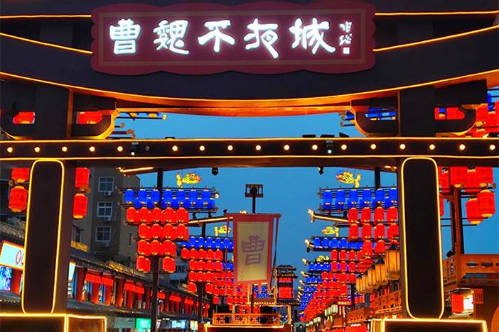 - 早餐后,我们集合前往【许昌】,到达许昌安排住宿。之后我们前往【曹魏不夜城】欣赏醉美夜景,品尝美食。这里有绚丽夺目的曹魏汉风特色灯笼、特色表演以及精致美味的特色小吃。夜幕低垂,华灯初上,许昌曹魏不夜城内灯火阑珊,仿佛一幅流动的历史画卷,等待着每一位旅人的探索与穿越。漫步在街区,两侧餐饮与商铺琳琅满目,尽显悠闲的市井风情。而近万盏灯笼与20余组灯光秀的巧妙布置,更是深浓地渲染了汉魏历史文化的厚重氛围。这里,时尚潮流与历史韵味和谐共存,相互辉映,宛如一幅缓缓展开的绝美画卷。