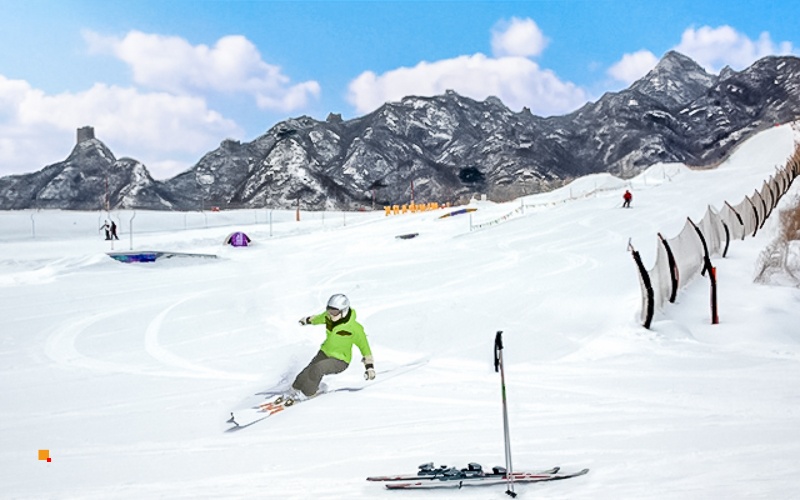 在长城的怀抱中滑雪,体验厚重的长城文化,感受“燕山雪花大如席”的壮丽景观。|北京怀北国际滑雪场有两条高空索道缆车,游客可乘缆车在长城上飞跃,登临落差238米道,一揽众山小,长城美景尽收眼底,在这里现代文明与古老文化激烈碰撞,交相辉映,大自然的鬼斧神工和喜怒无常在这里发挥到极至。