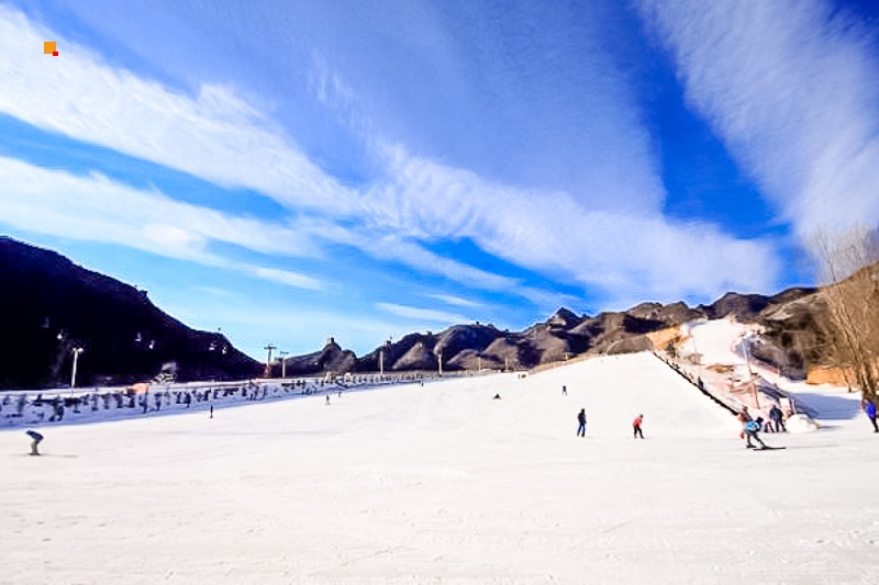 北京怀北国际滑雪场总面积9.6平方公里,滑雪场雪道全长3800米,落差238米,由1条道、2条中级道和3条初级道组成,2条高空索道缆车,沿长城凌空飞跃,6条大拖纤在群山中委蛇,其中道、中级道的规模具备了国际化雪道标准。