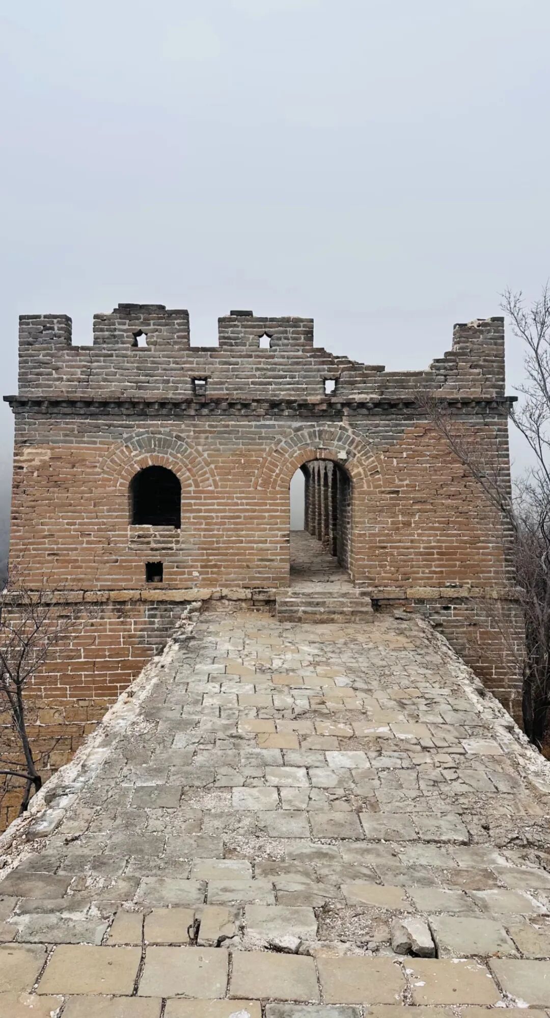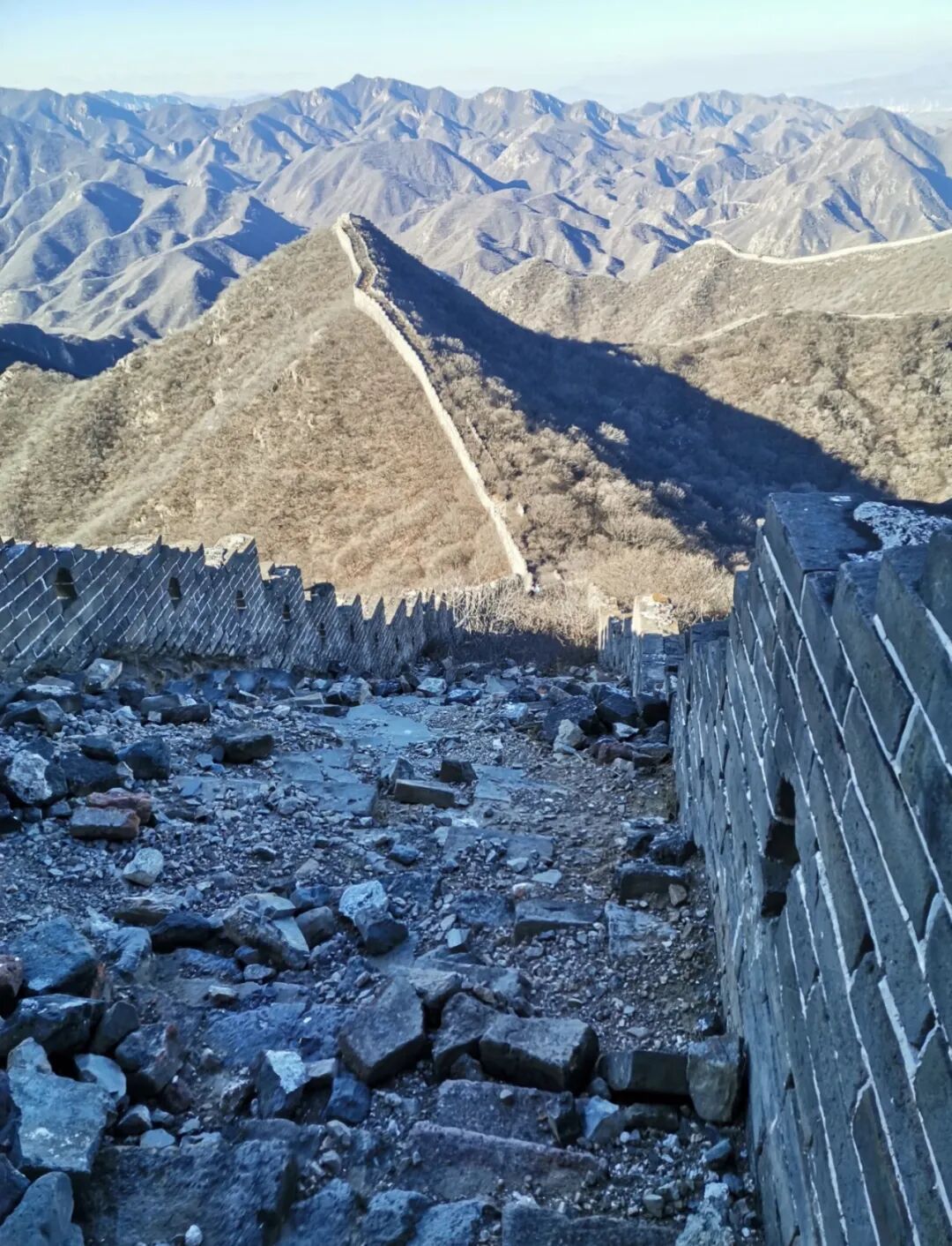 这段长城由于河北段人为的破坏,盗取城砖盖民房,使得损坏严重,又疏于失修,是忏悔的见证,至今还有没有来的及搬走的完好城砖码放在城楼上。