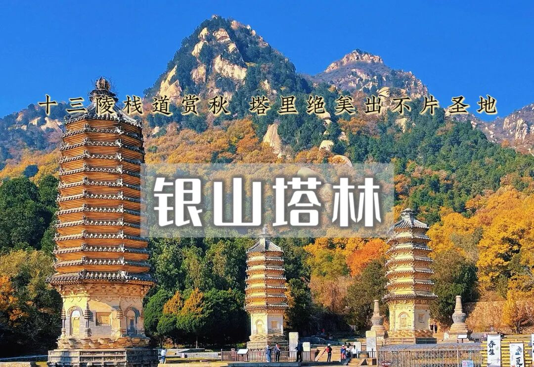 银山塔林位于昌平县北部,原名“铁壁银山”,因悬崖陡峭如同高大的墙壁一样,色黑如铁,而大雪之后漫山皆白,山色如银,故而得名。景区特点是山美、树美、塔多。山美源于漫山遍野的松、柏、橡树,颜色也随着树种的变化而呈现深绿、浅绿等不同色彩。银山南麓有众多古塔林立于峡谷之间,最为壮观的是华禅寺内的金代佛塔。
