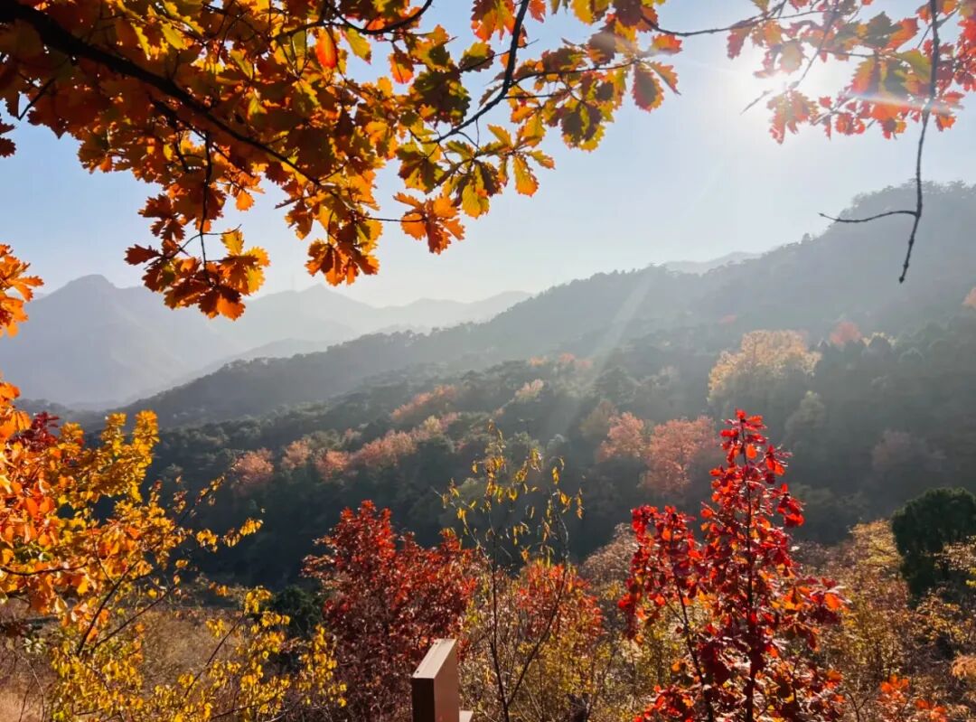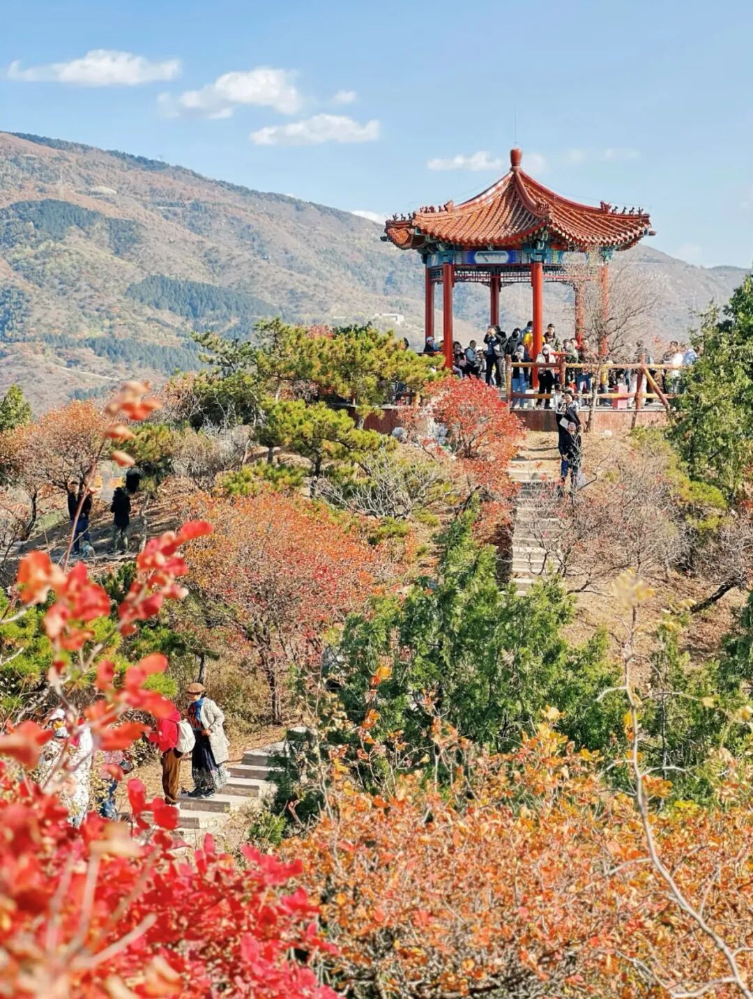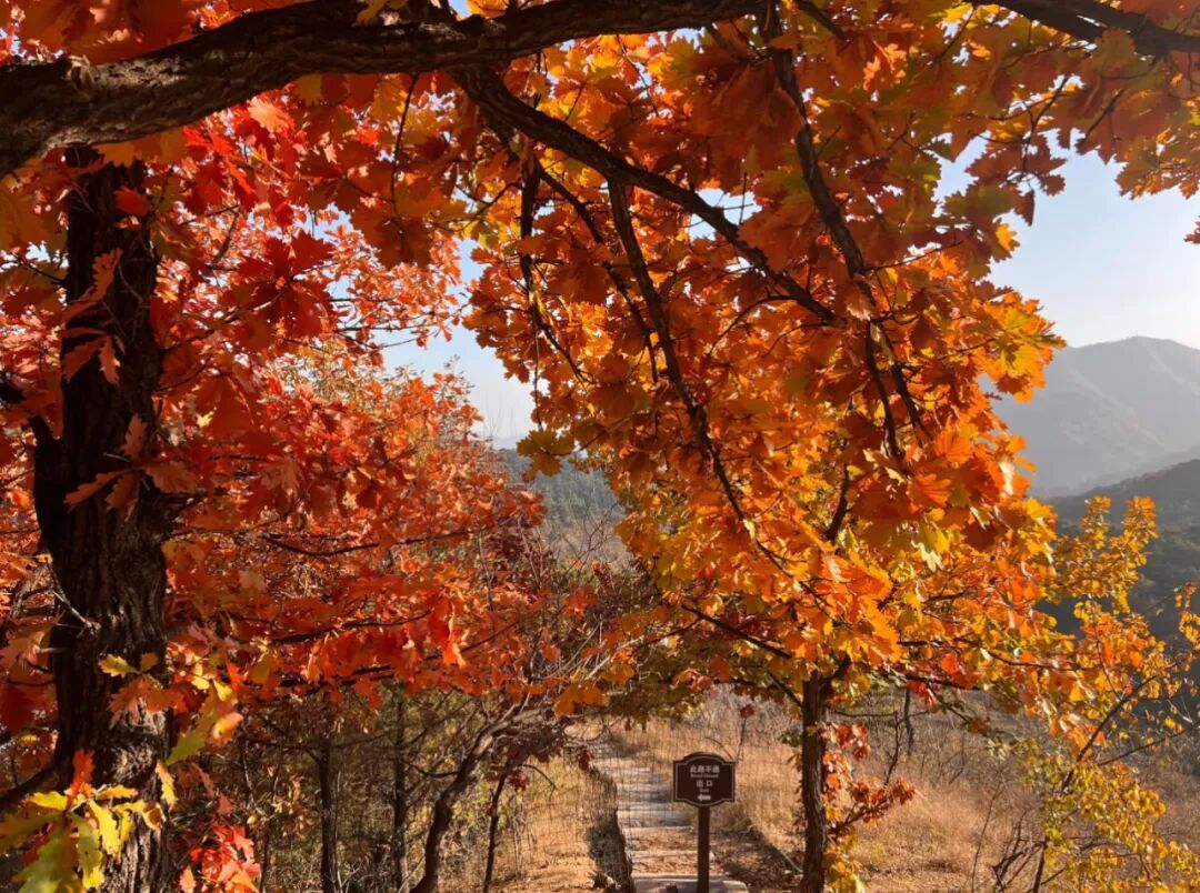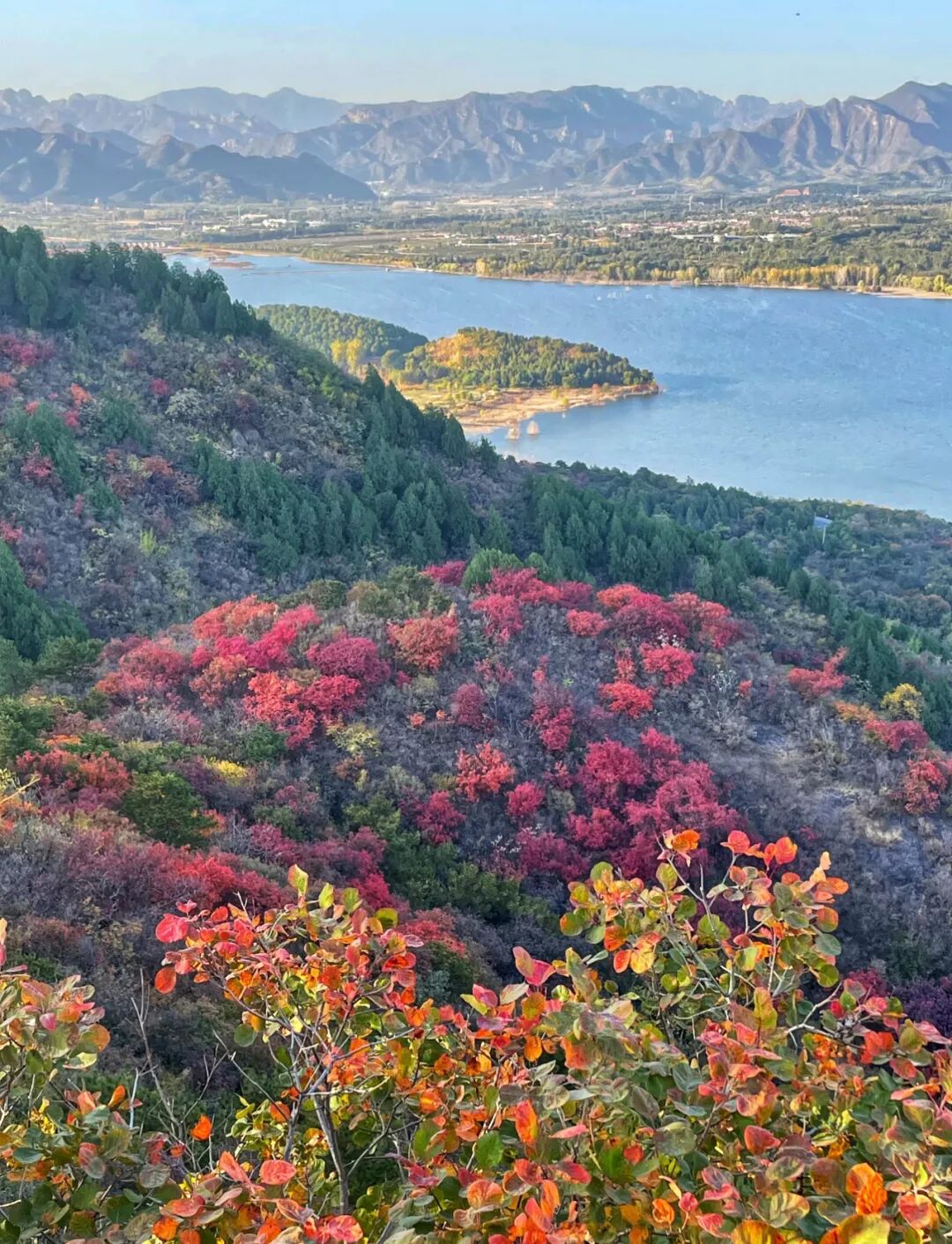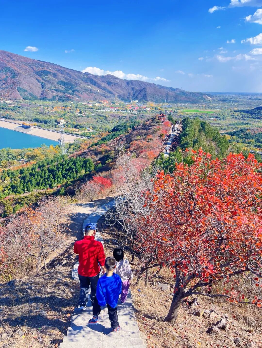 - 09:30|到达『十三陵登山步道』,大家在领队的带领下徒步栈道赏景。这里的红叶观景步道全都修在山脊上,让人一边沿着步道游览,一边歇脚俯瞰十三陵水库,满眼都是层林尽染的金秋美景,人在红叶中,红叶裹挟着人,拿出手机,随手一拍,都是美图!