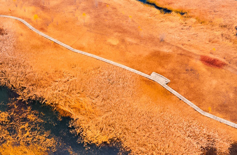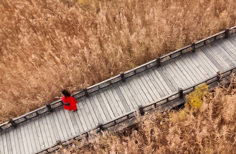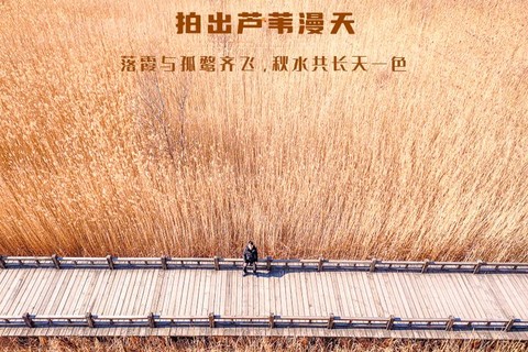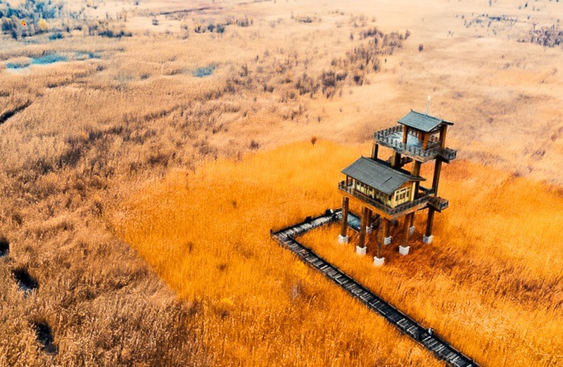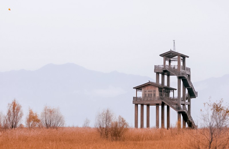 最经典的拍照地就是望湖楼了,不需要航拍器,登上望湖楼,就可以拍出各种大片!这里也是鸟瞰湿地的最佳观景处。