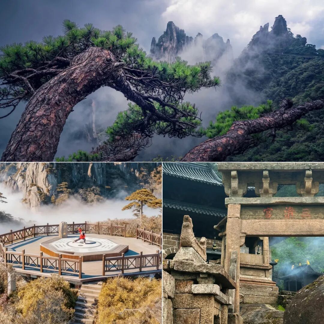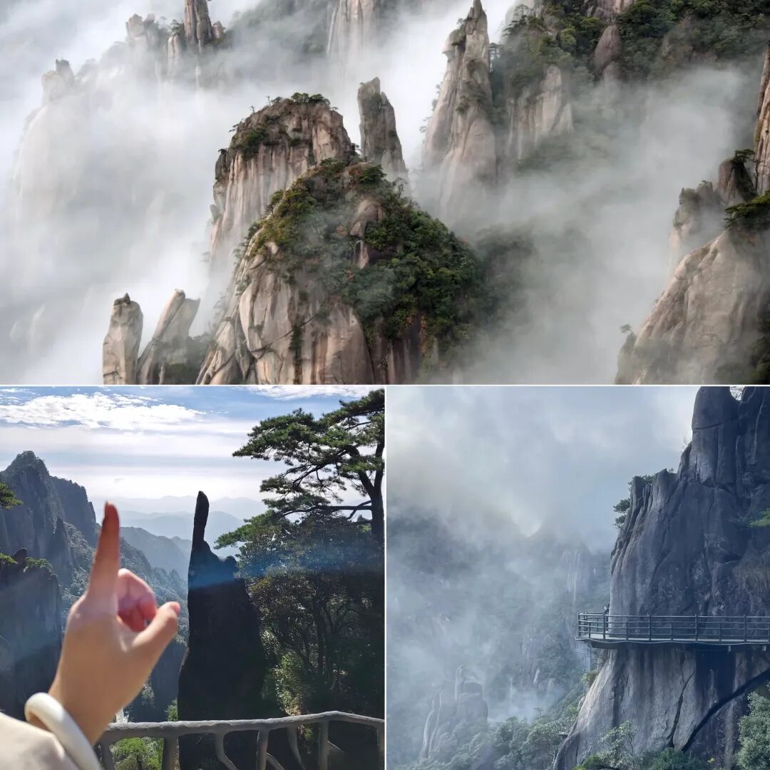 - 第一仙山--三清山“揽胜遍五岳,绝景在三清”三清山的花岗岩峰林地貌堪称一绝,“巨蟒出山” 拔地而起,直插云霄,仿佛要冲破天际;“东方女神” 端庄秀丽,静坐山巅,深情凝视着这片土地,栩栩如生的模样让人不得不感叹大自然的鬼斧神工。还有形态各异的 “企鹅献桃”“狐狸啃鸡” 等,每一块石头都仿佛在诉说着一个古老的故事。