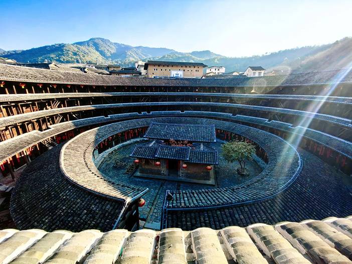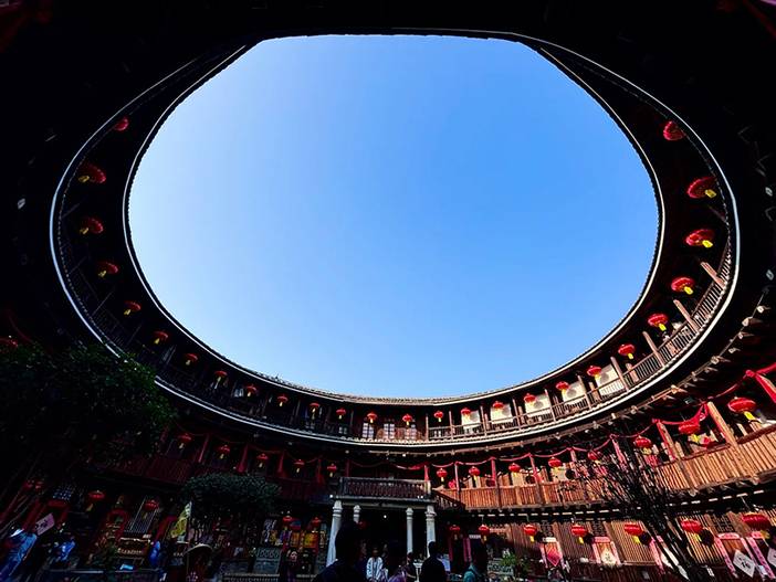 怀远楼(游览约 40 分钟):工艺精美的双环圆土楼,外环 4 层,内环为私塾 “诗礼庭”,木雕、石雕精湛,书香气息浓厚,体现 “耕读传家” 理念。