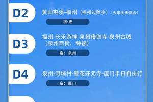- 早餐后大巴继续出发,下午抵达福州。安排入住后,大家自由感受福州过节氛围。今日火车团朋友也将与我们汇合。