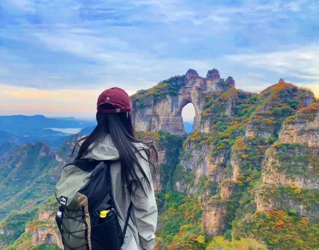 这里群山环抱,云雾缭绕,潺潺清泉,啾啾鸟鸣,无不令人心旷神怡。这里的秋色更是无可挑剔,枫叶像一面面小红旗在山间飘过;黄栌叶像一颗颗金黄的果实在树间摇动。山径曲折回旋,可沿路攀援,亦可独辟蹊径,山之巧然,尽孕其中。