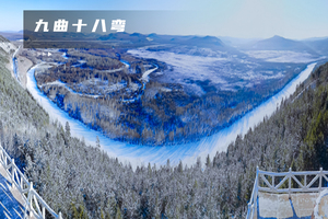 - 漠河接站后,我们乘车前往-九曲十八弯登上看台,看(自然形成的九曲十八弯犹如银练飘舞,别有洞天。尤其在6-9月份100多天里,景致更为壮观。登台俯视,层恋释翠、云雾缭绕、其形状变幻无穷,或山、或峰、或汹涌的潮水、或万马奔腾、令您如临仙境,心旷神怡。)冬季宛如一条巨龙在酣睡。
