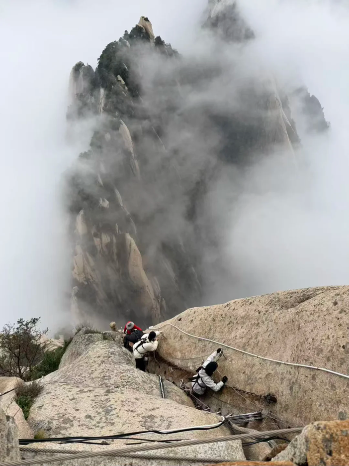 - 今日早起,一早前往登【华山】,一定要带上今天上山的粮食和水呦!我们乘坐那亚洲最长的缆车到达西峰,你可以坐在缆车上看到脚下险峻的山势,也能看到在攀爬的人们,刺激到爆炸!之后走华山最高峰—南峰炼丹炉、南天门。想寻求挑战的朋友们可以去长空栈道试试,那里只有木板和铁链相连,挂在峭壁之上,仅能通过一人,长空栈道人比较多,需要单独排队,大家自愿尝试。之后我们走东峰,很多人愿意来这里爬鹞子翻身,这里比长空栈道稍微稳妥一点,但也需要绑着安全措施直上直下,能看到下棋亭。之后走天梯,绕回到西峰,坐缆车下山,欣赏这华山的傍晚。