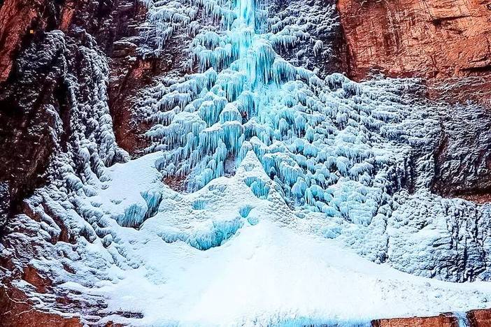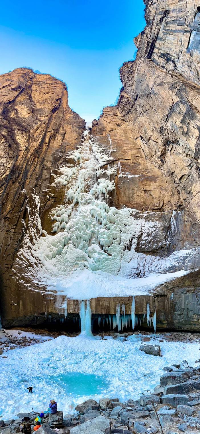 这里是太行山闻名遐迩的美术写生基地,有着静谧的乡村风情,从画家村出发,沿着一条未开发的原貌峡谷仙霞谷,我们一路溯源而上,来到了高达140米的圣诞树冰瀑跟前,大家一起来领略晶莹剔透的冰花,欣赏千奇百怪的冰挂,感受垂直悬挂的冰柱,打卡令人惊艳的“zui美冰瀑没有之一”的【圣诞树冰瀑】,近距离感受大自然精心准备的绝美冬日礼物。
