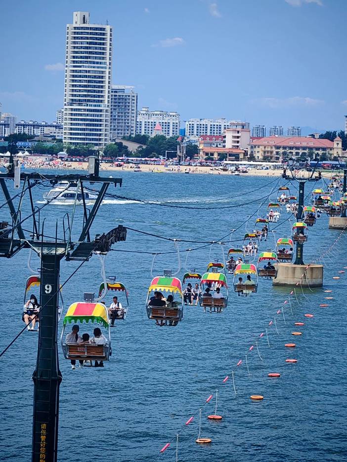 乘跨海索道可游览海螺仙子、三道关、海中海、海中喷泉、七星灵石、观海长廊、仙螺阁、临海栈道等造型古朴典雅的景观;登岛后乘电梯到达高56米的观光游乐塔上观看南戴河全景,体验海上蹦极,海上漂流和海上跳伞的惊险和刺激。