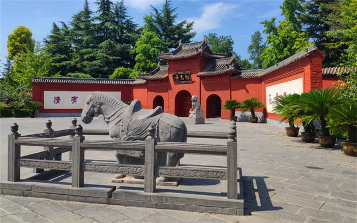 洛阳白马寺位于河南洛阳城东十二公里,汉魏洛阳故城西约一公里,北靠邙山,南望洛水,是佛教传入中原地区后的第一座寺院,有“中国第一古刹”“释源”“祖庭”之称。
