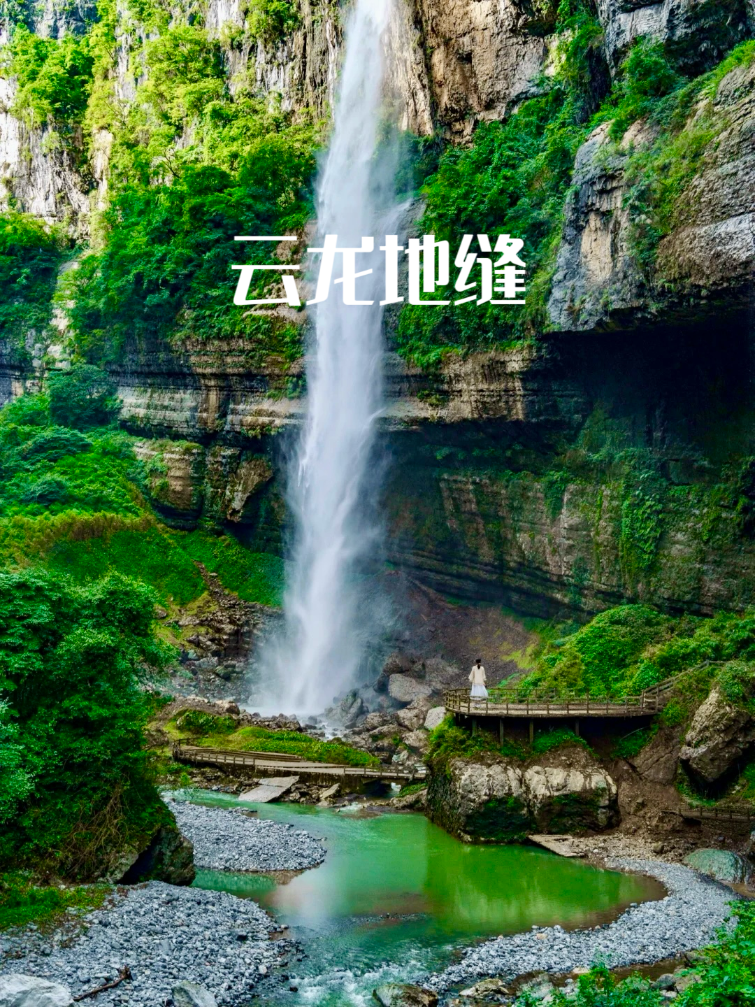 地缝上共有7条半瀑布(有一条瀑布叫“半流瀑”,丰水期有,枯水期无,故称半条瀑布)。云龙地缝曾是云龙河的伏流段,以暗河形式沉睡地下二、三千万年,后因水流在地下强烈掏蚀,在地表不断剥蚀、致使暗河顶部坍塌,地缝才得于面世,成为恩施大峡谷一大奇观。