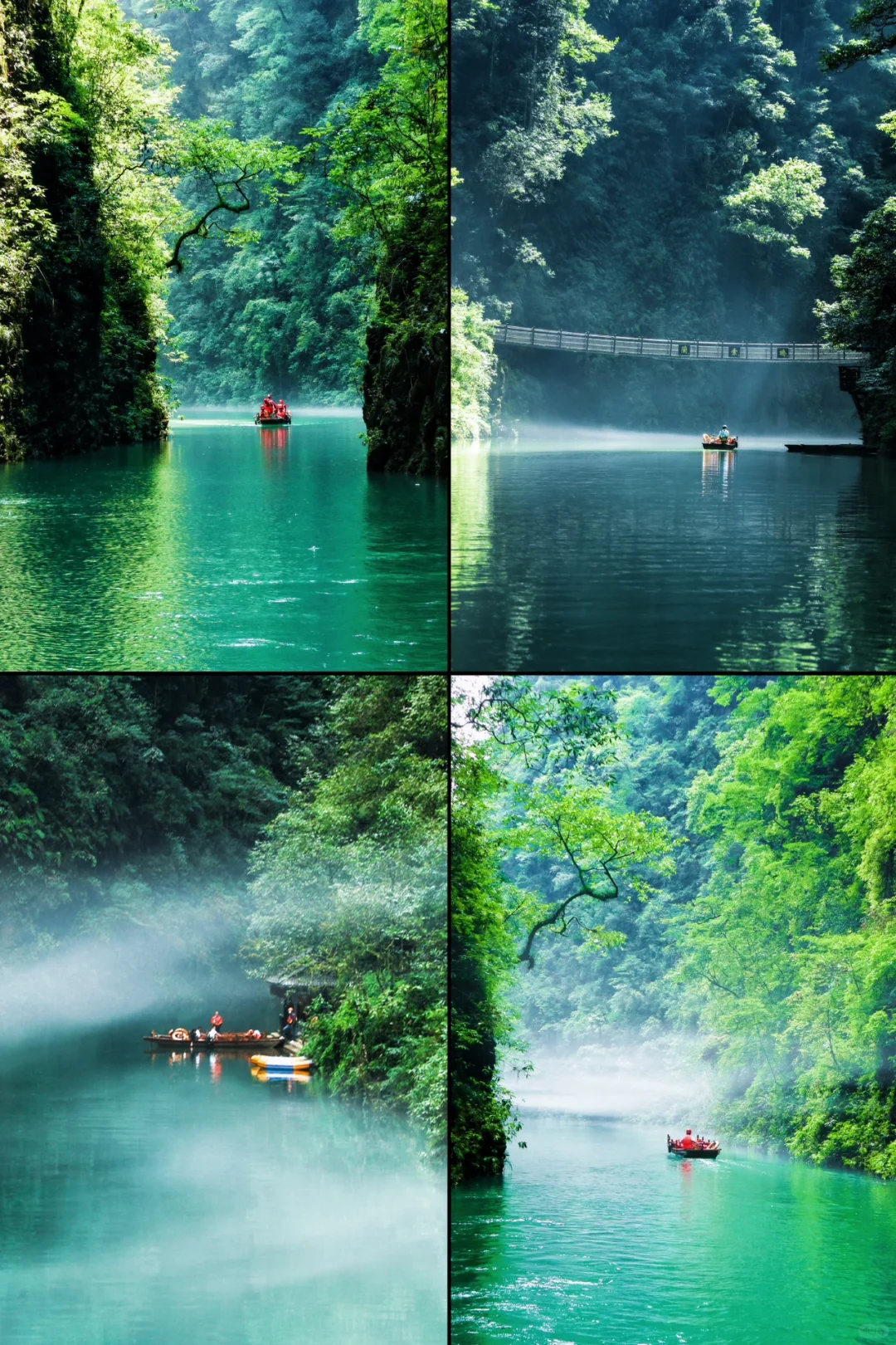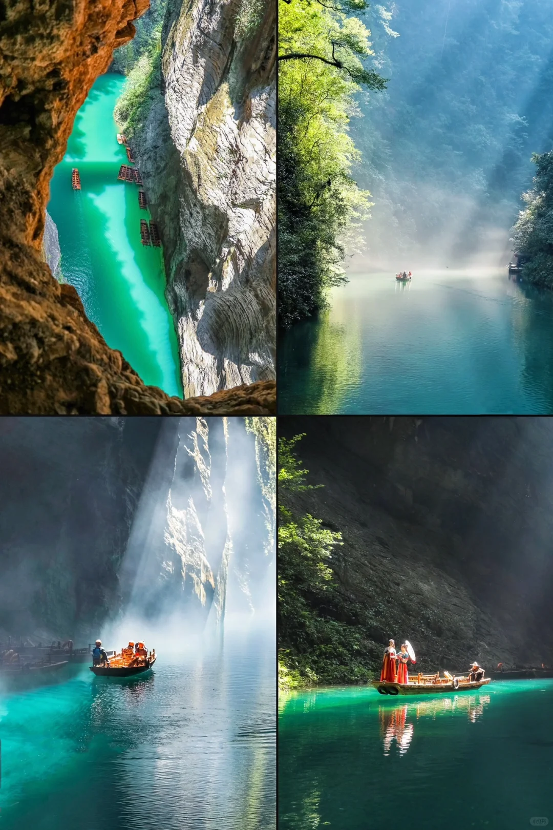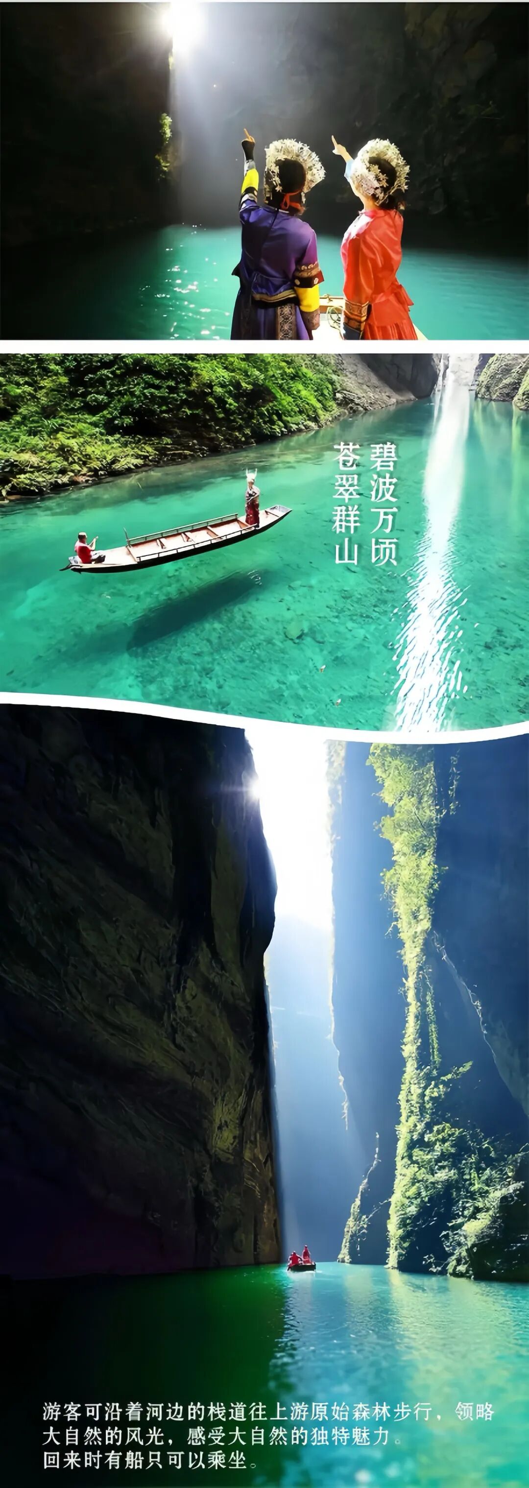 2、徒步线路全面升级,领队深度踩线,带您进入一片绝美的世外仙境,躲避峡谷,这里被誉为“中国的仙本那”,清澈见底的河上,船行上面犹如漂浮空中。