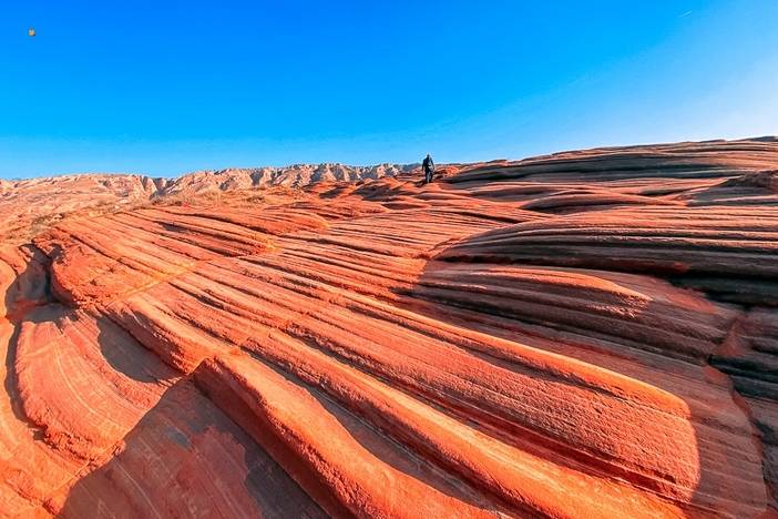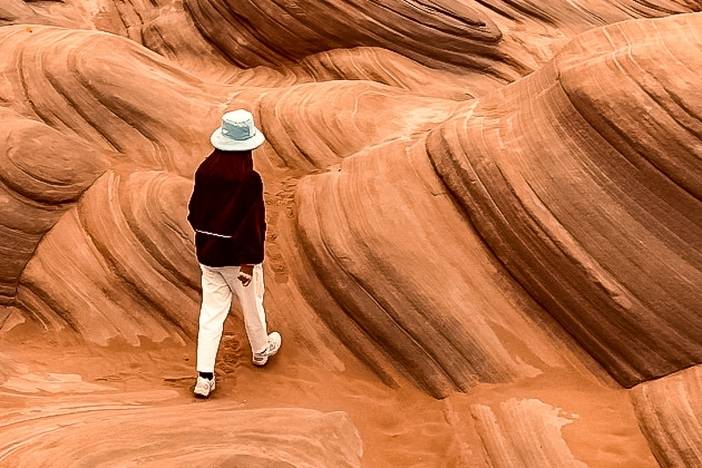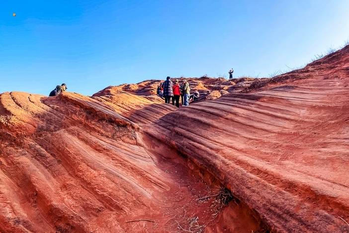靖边波浪谷岩石叫红砂岩,学术上被称为"砒砂岩",成于古生代二叠纪和中生代三叠纪、侏罗纪、白垩纪之间。这是地球历史中地质最活跃、生物最繁茂、动物最庞大的时代。