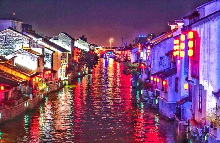 由两条"丫"型千年古河和两条沿河古街交汇而成,荟萃了丰富的历史遗存和人文景观。其中最著名的是有"古运河绝版精华地"美誉的"江南水弄堂"。沿岸的桨声、灯影、古桥、民居构成了一幅天然的古运河"民俗风情水上画廓"。