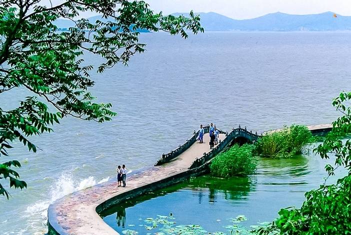 - 上午我们就在鼋头渚游览,这里被人称为“中华第一赏樱胜地”,我们可以坐游船游览这太湖西岸的美景,也可以在花海中漫步,看鼋头渚牌坊、看长春花漪、海峡友好石碑...每年的清明前后,这里的万千樱花竞相开放,春风微抚,樱花瓣漫天飞舞,给人一种进入漫画中的错觉。美女们可以穿些古装,或者带着粉嫩色系的丝巾进去拍照,一定很美。