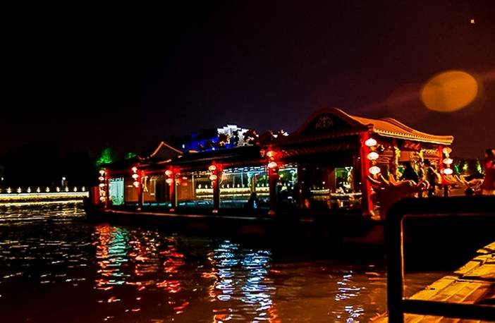 - 你还可以自由结伴前去游览古运河,夜色下的古运河在灯光的照耀下显得那么安详、宁静,看着风景真的是不错的选择!古运河扬州段是整个运河中最古老的一段。这一段运河最为古老,可谓历史遗迹星列、人文景观众多。乘坐游船沿着“乾隆水上旅游线”悠悠地向蜀岗瘦西湖风景区荡去,领略扬州夜色。那一幕幕美丽的风光不时出现在游客的面前,美丽的古运河风光,秀丽的古城,在越来越宽阔的水面上尽显它的美丽。