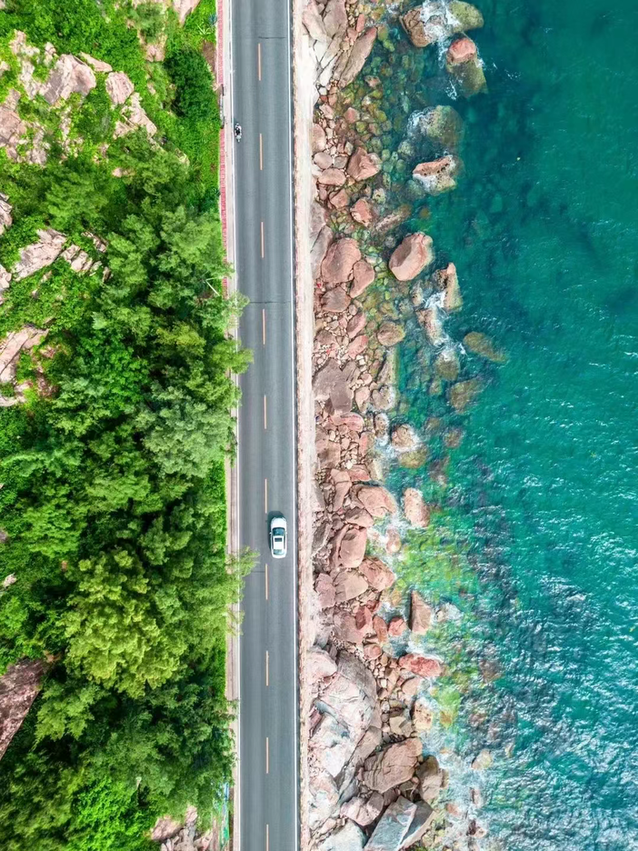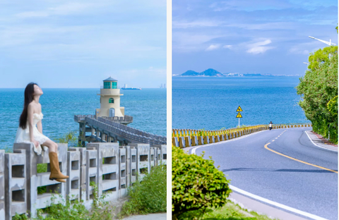 乘车穿越跨海大桥,环岛路蜿蜒山海之间,左手是苍翠的风车阵,右边是蓝天白云的海岸线。这个宝藏海岛等你来打卡!分分钟拍出大片。