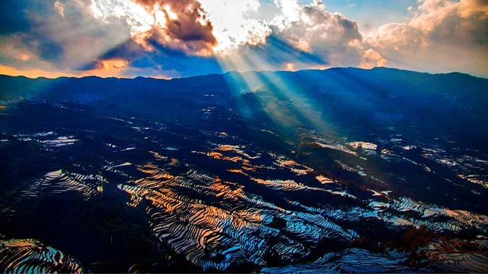 傍晚时分前往老虎嘴或者坝达梯田景区拍摄日落,欣赏元阳梯田落日下壮丽的田园风光;观景台拍摄地有上下2个观景台,大家需要选择好位置以及安排好时间,两者观景台之间距离步行需要20分钟。拍摄日落之后前往客栈入住,晚餐自行结伴在当地农家乐品尝农家美食。
