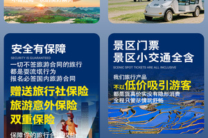 ▷门票说明:如持有教师证、军官证、记者证、伤残证、导游证、学生证等特殊证件,请提前向带队司机/领队出示;由于旅行社在景区门票是折扣票,优惠减免是按照旅行社折扣价退还,不以景区挂牌价退还,敬请谅解。(具体优惠政策以景区实际收费为准)