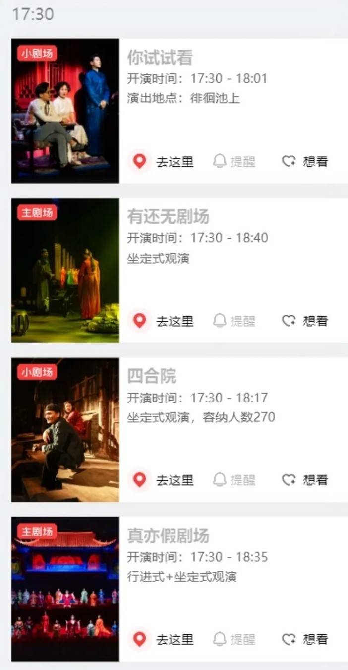 - 14:00|到达只有红楼梦戏剧幻城,大家根据当日节目表,自由游览参观。