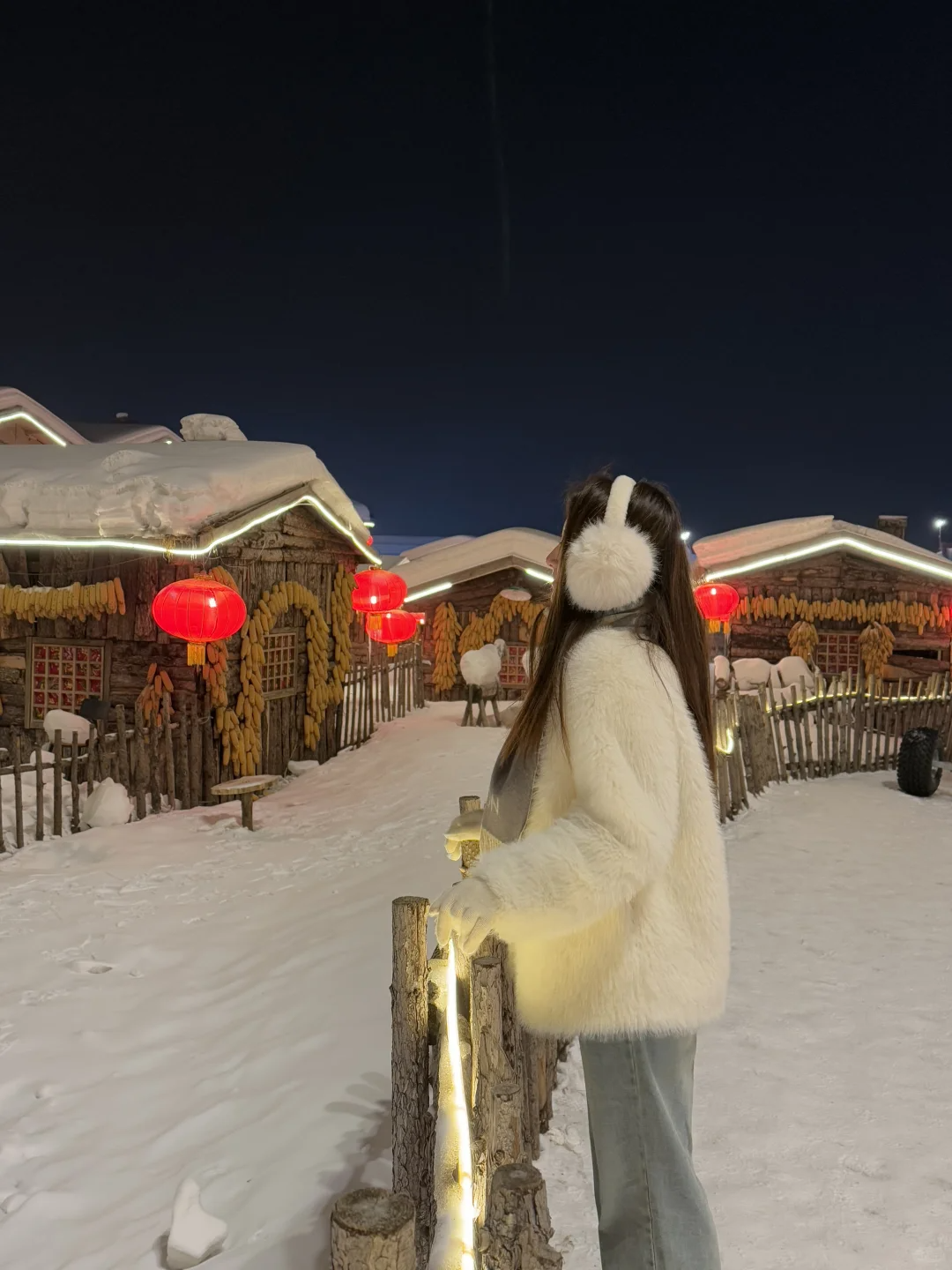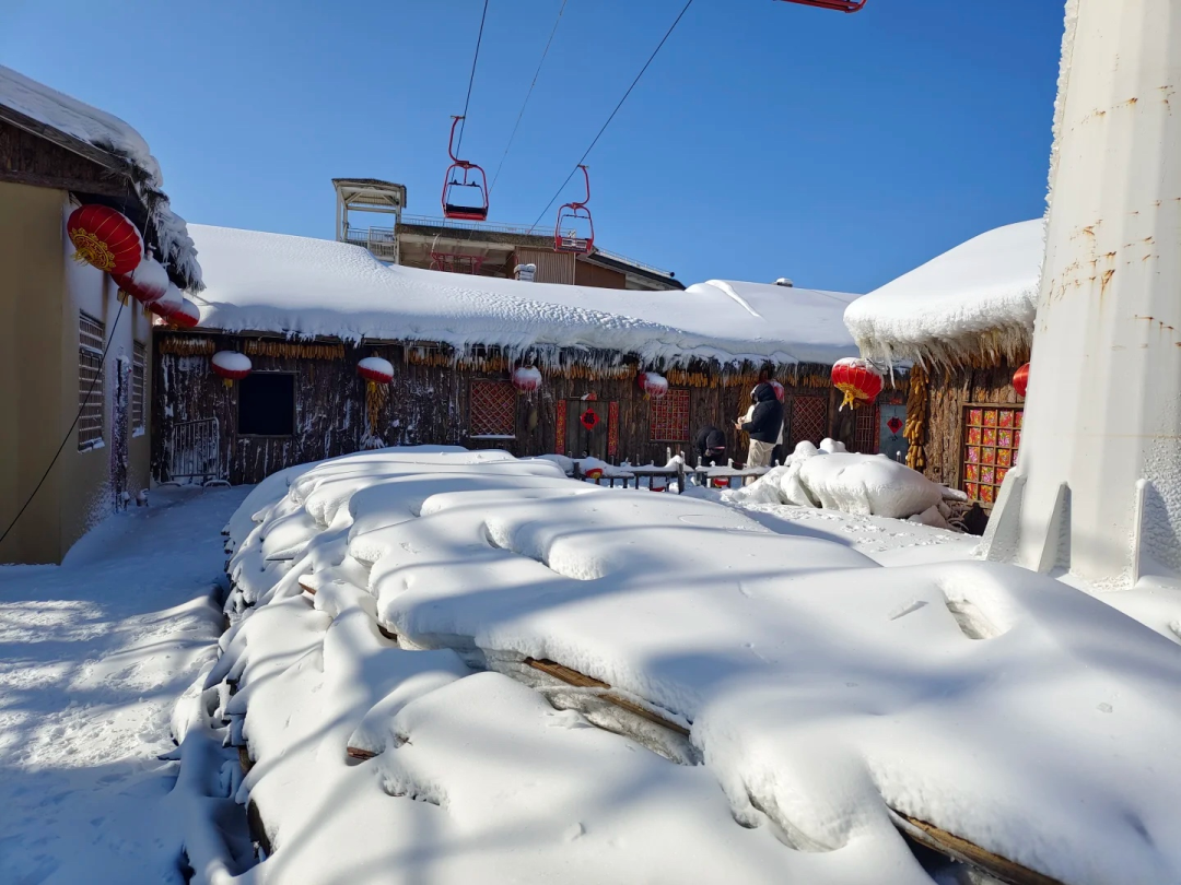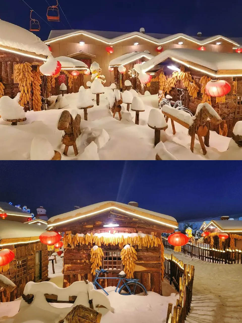 这里好玩的项目可不少!雪地摩托,风驰电掣间,感受着速度与激情,还有雪圈滑道,从高高的滑道上飞驰而下,玩累了就漫步在雪韵大街,街边的小店琳琅满目,特色小吃的香气弥漫在空气中,让人垂涎欲滴。每走几步就是绝佳拍照点。木刻楞房屋前挂着的红灯笼与白雪相映成趣,随便一拍都很出片。夜幕降临后,灯光亮起,整个雪乡宛如梦幻仙境,此时站在观景台上,俯瞰雪乡全景,拍下的照片美到能当壁纸。