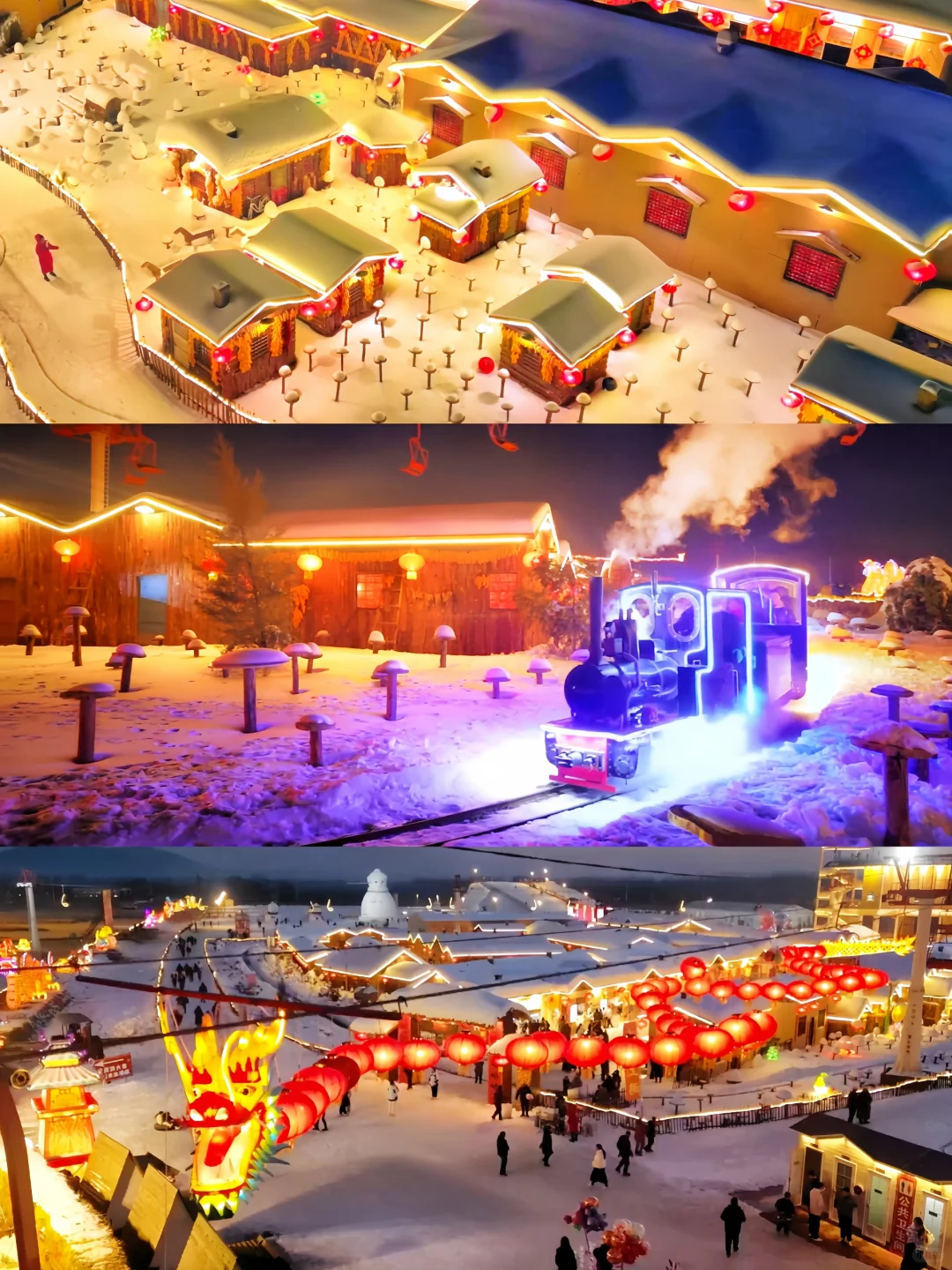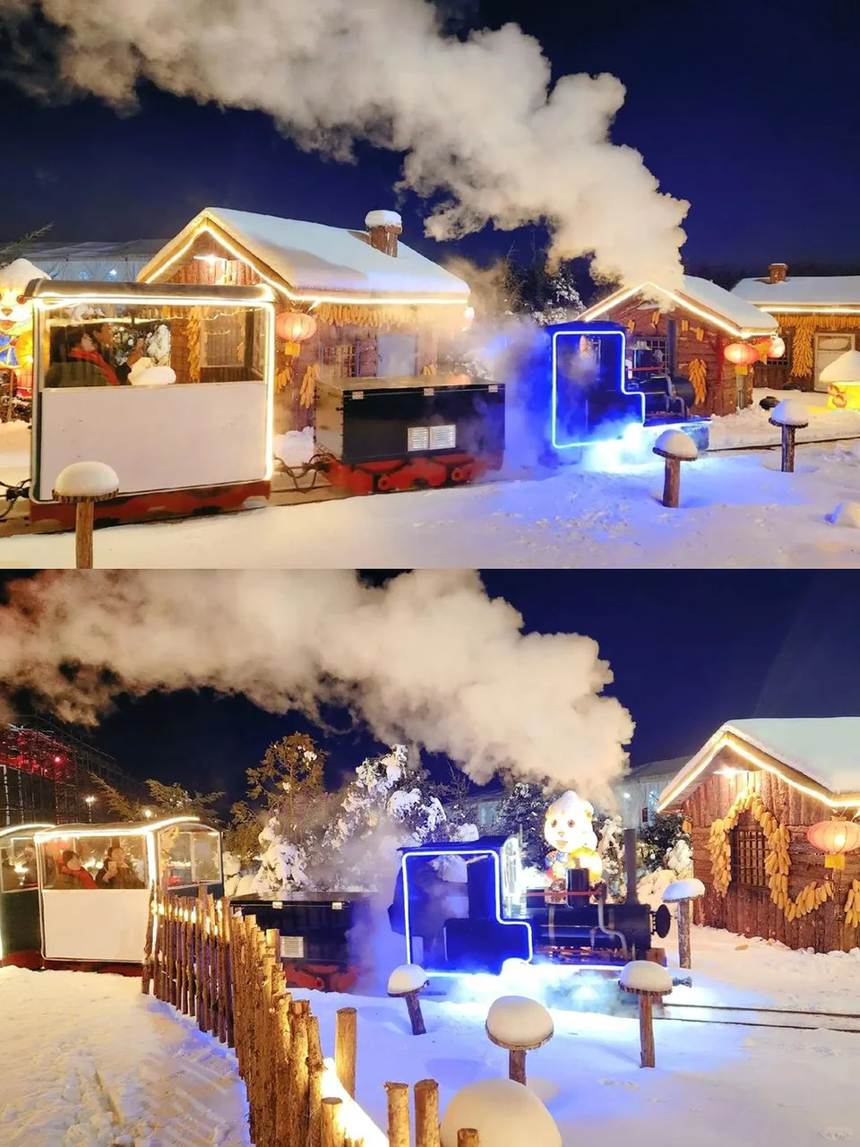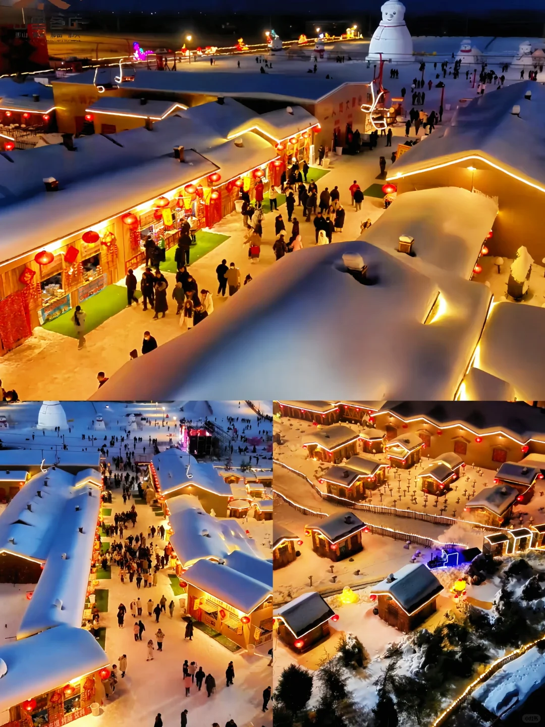 这里好玩的项目可不少!雪地摩托,风驰电掣间,感受着速度与激情,还有雪圈滑道,从高高的滑道上飞驰而下,玩累了就漫步在雪韵大街,街边的小店琳琅满目,特色小吃的香气弥漫在空气中,让人垂涎欲滴。每走几步就是绝佳拍照点。木刻楞房屋前挂着的红灯笼与白雪相映成趣,随便一拍都很出片。夜幕降临后,灯光亮起,整个雪乡宛如梦幻仙境,此时站在观景台上,俯瞰雪乡全景,拍下的照片美到能当壁纸。