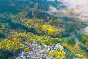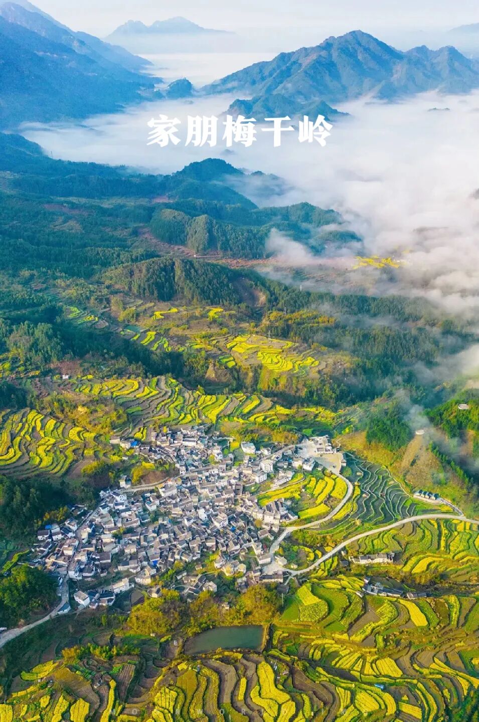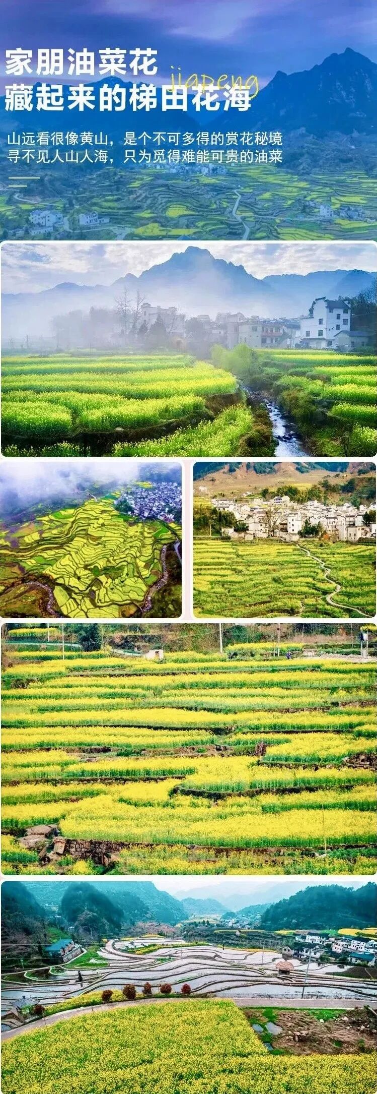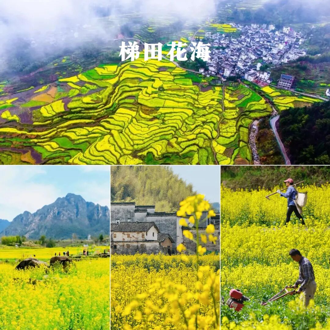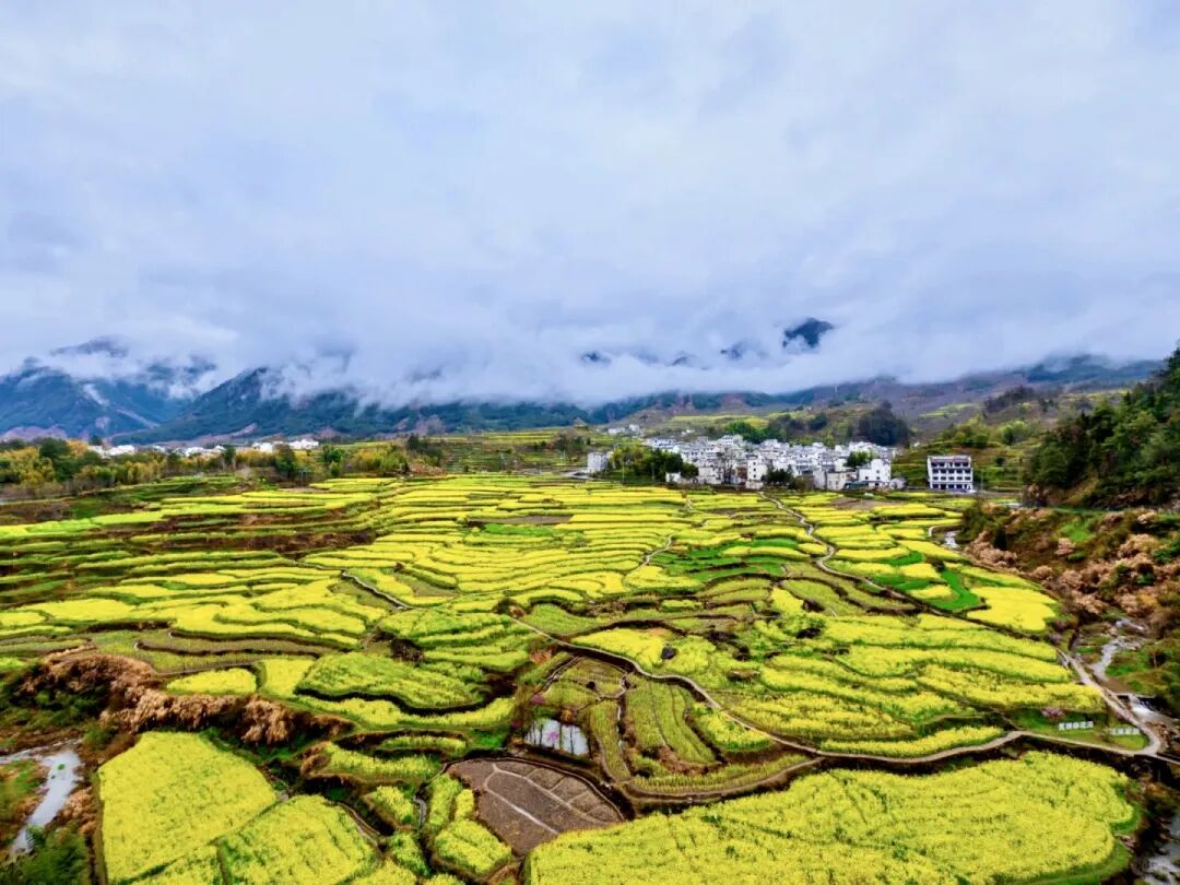 梅圩岭油菜花 | 这仙气有点太浓,安徽宣城绩溪家朋的油菜花海以梯田形态存在,铺展在家朋坎头古村落往南的整片大面积山坡地上,而在坡地的东侧,是一片巨大高耸的岩石屏障,有些皖南“扎尕那”的感觉。