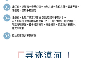 北极村-七星广场定点旅拍(赠送3张电子照片)-无人机航拍(赠送团队短视频1个)-最北邮局-最北哨所-鄂温克驯鹿园-打卡漠河舞厅-漠河(90KM,车程约1.5小时)-哈尔滨