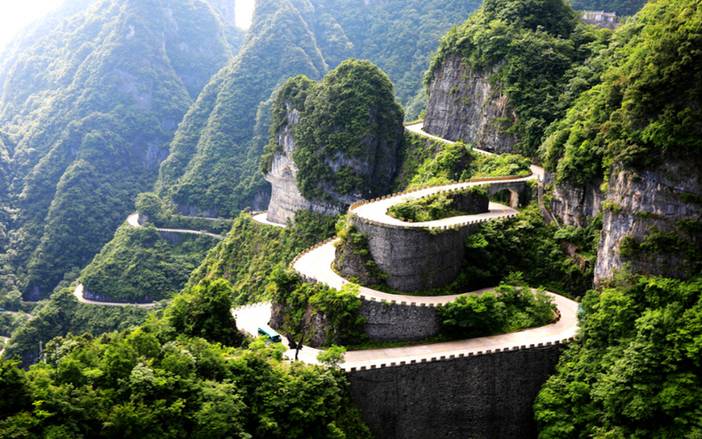 通天大道:被称为通天大道的盘山公路共计99弯,似玉带环绕,弯弯紧连,层层叠起,依山籍壁,直冲云霄,“天下第一公路奇观”横空出世,从索道上观看公路,有如蜘蛛网一般密集的公路,垂直高差达千米左右。